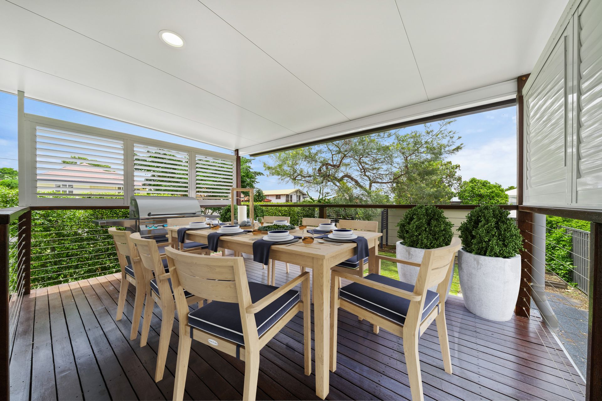 - Oversized deck with privacy shutters