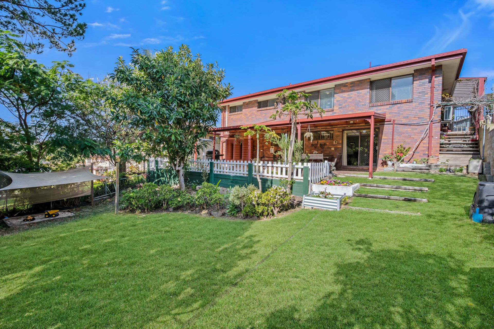 - Fully fenced yard with large garden shed & sand pit