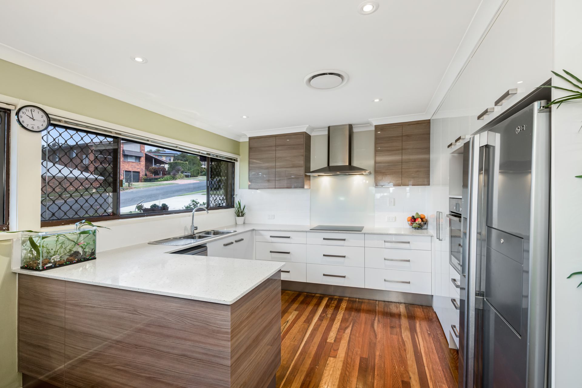 - Living and dining rooms share a large open space with the homes kitchen and feature polished timber flooring, ducted air-conditioning, ceiling fan and access to the front balconies.