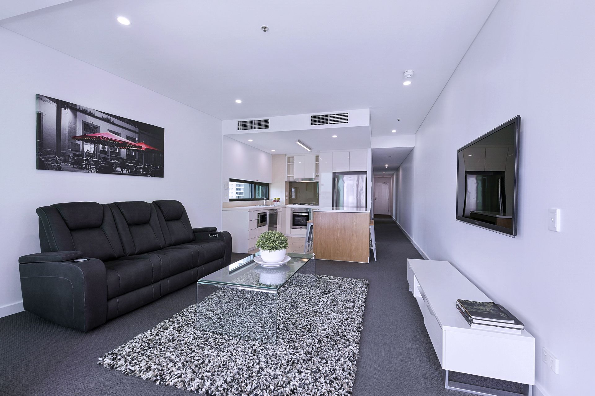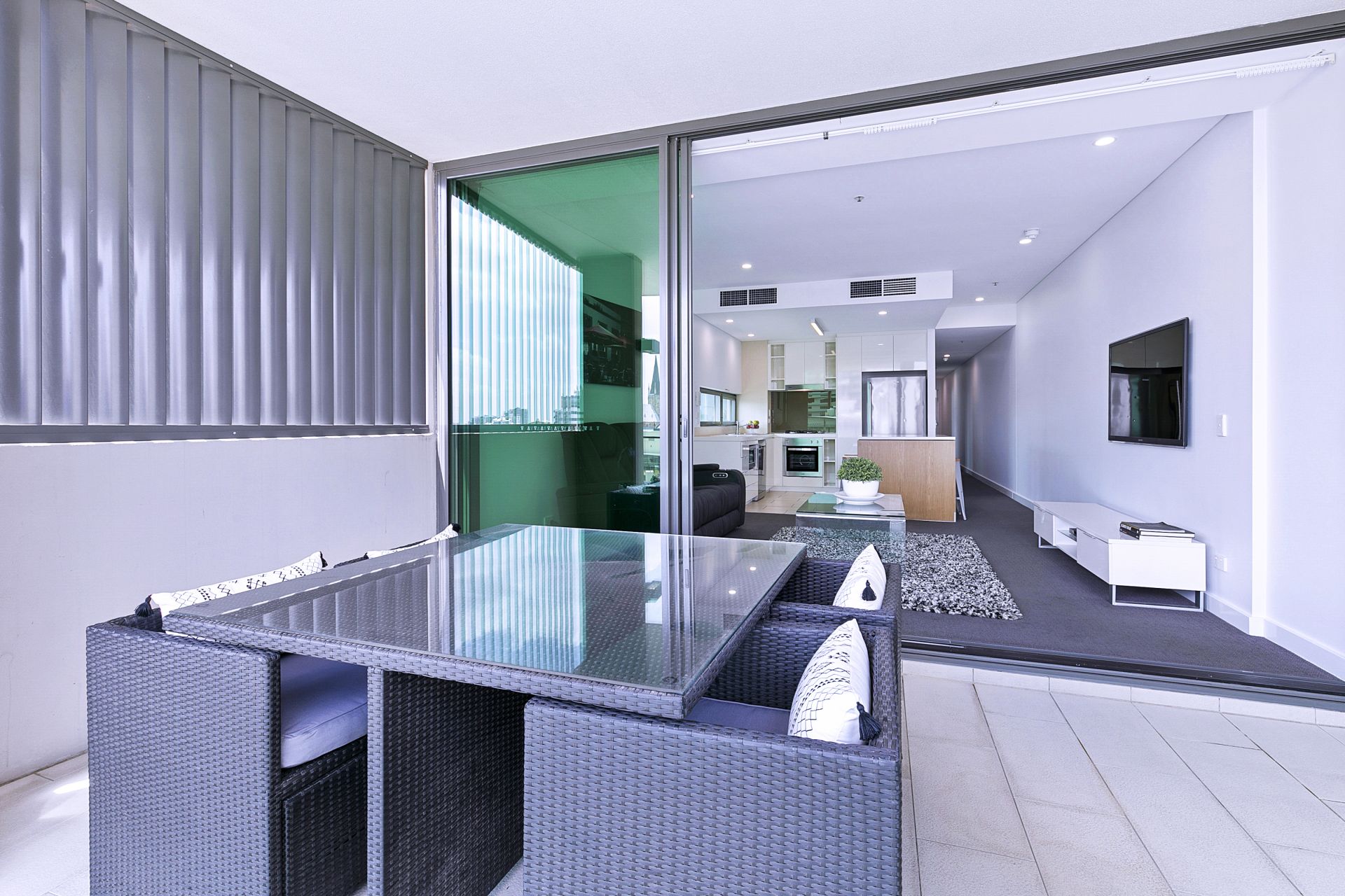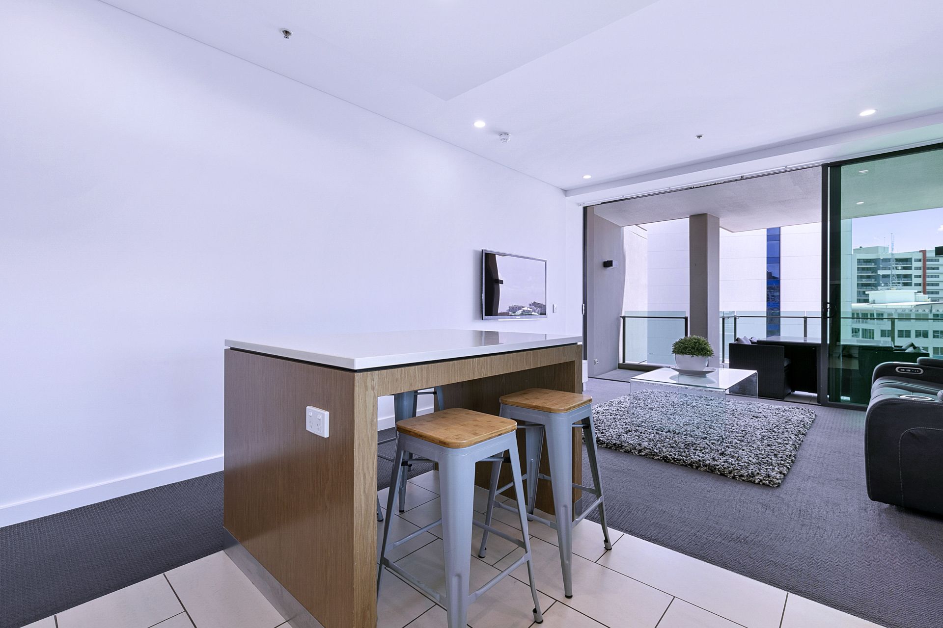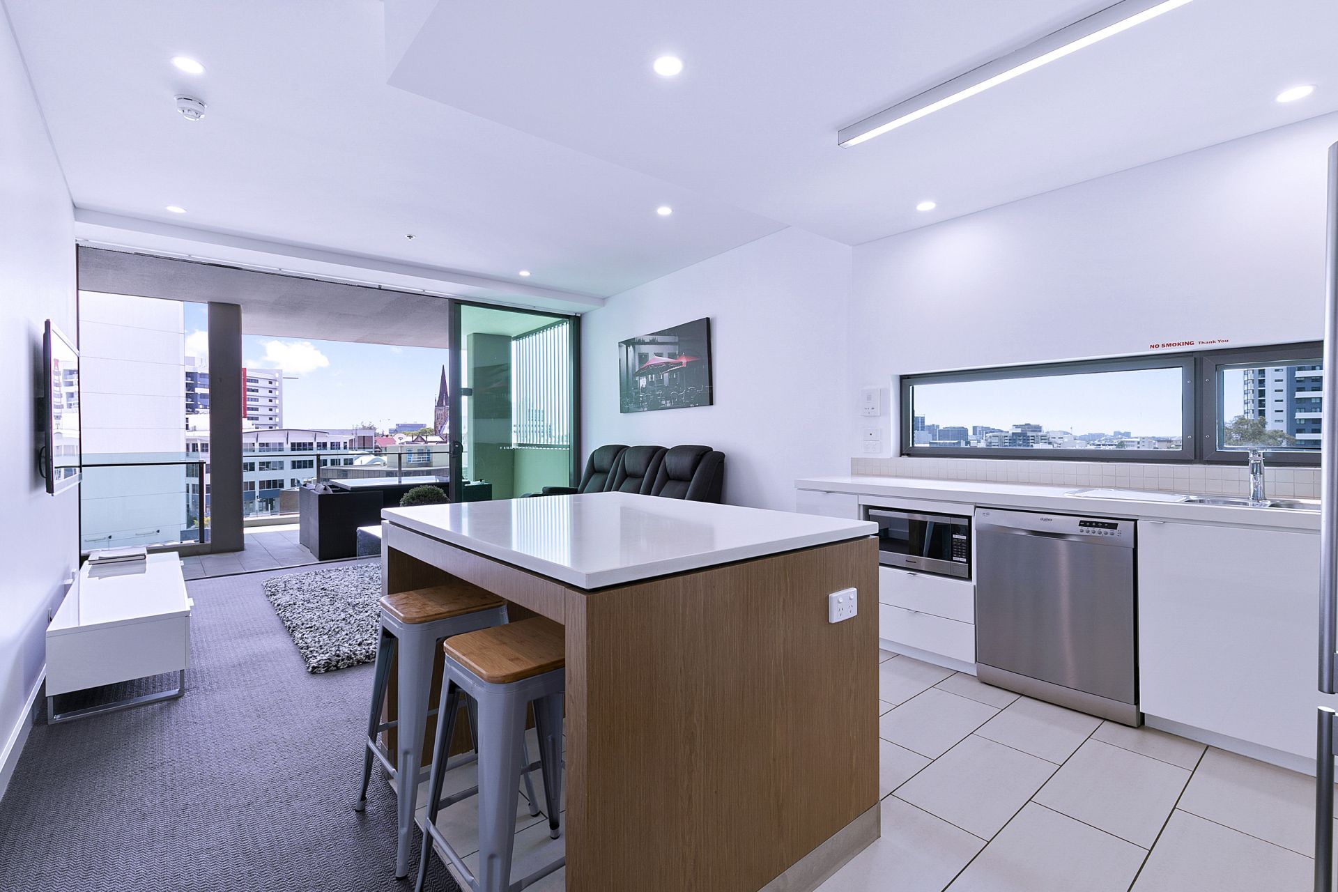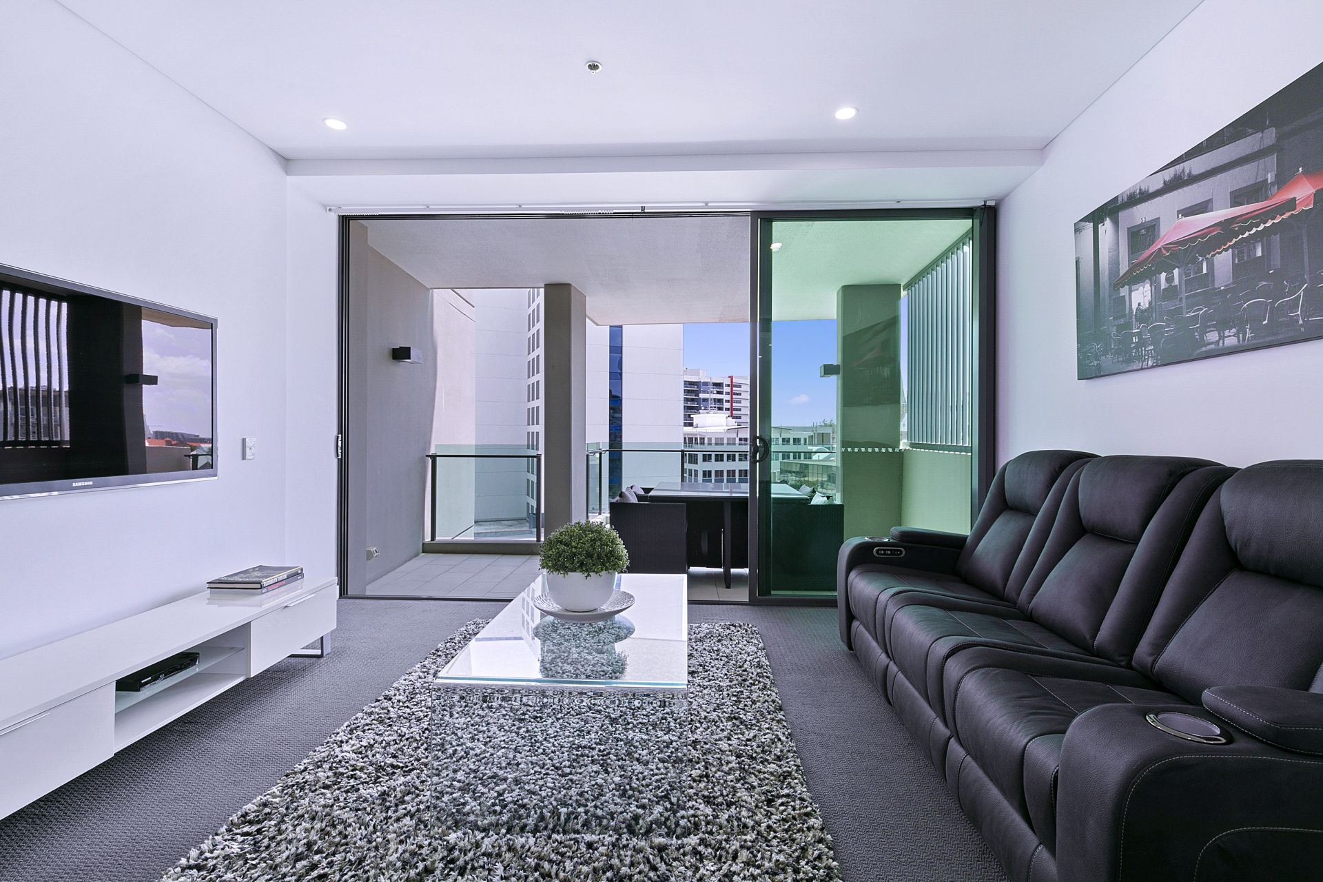 to the large balcony via the glass sliding doors offers a seamless flow of living