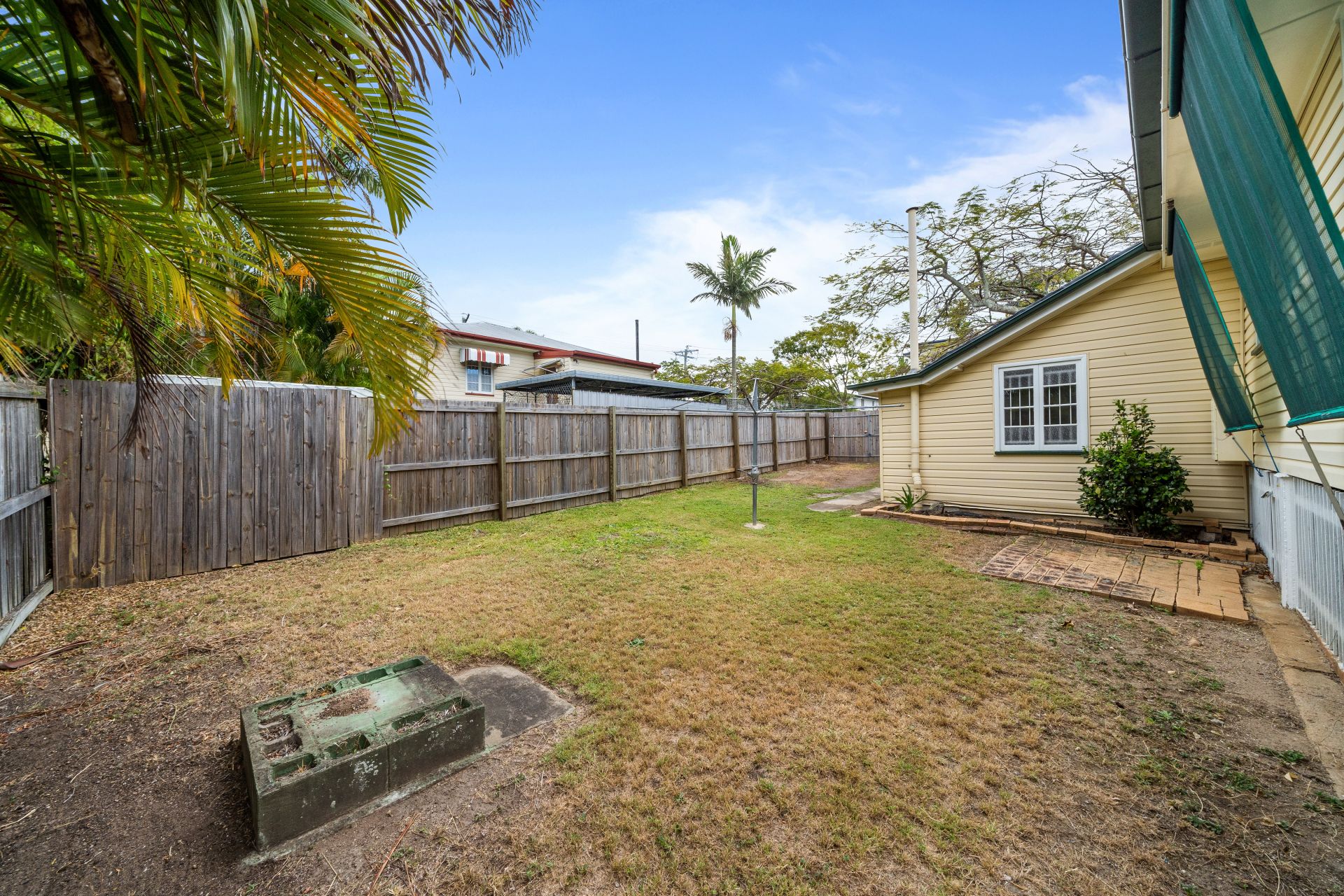 - Laundry featuring wash tub, linen cupboard, and external access to the yard.