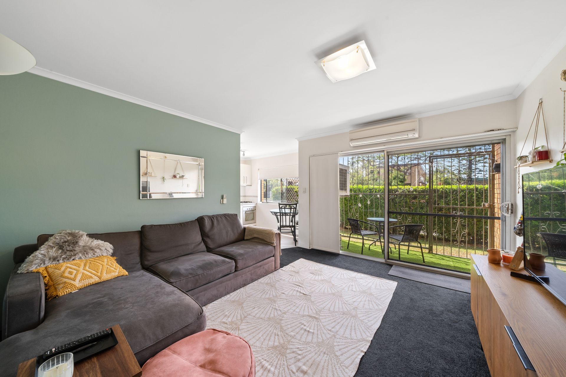 - The air-conditioned main living area is of a generous size and offers carpet flooring plus entertaining patio.