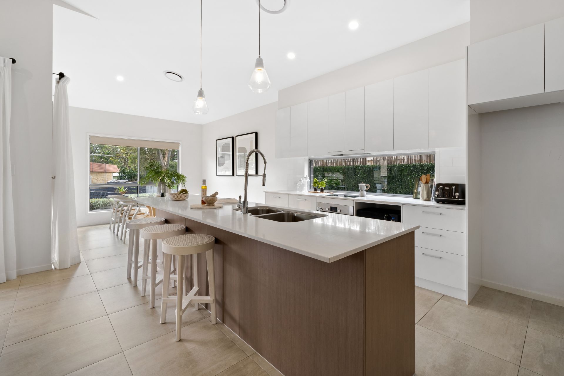 > 20mm stone benchtops with built-in breakfast bar (kitchen)