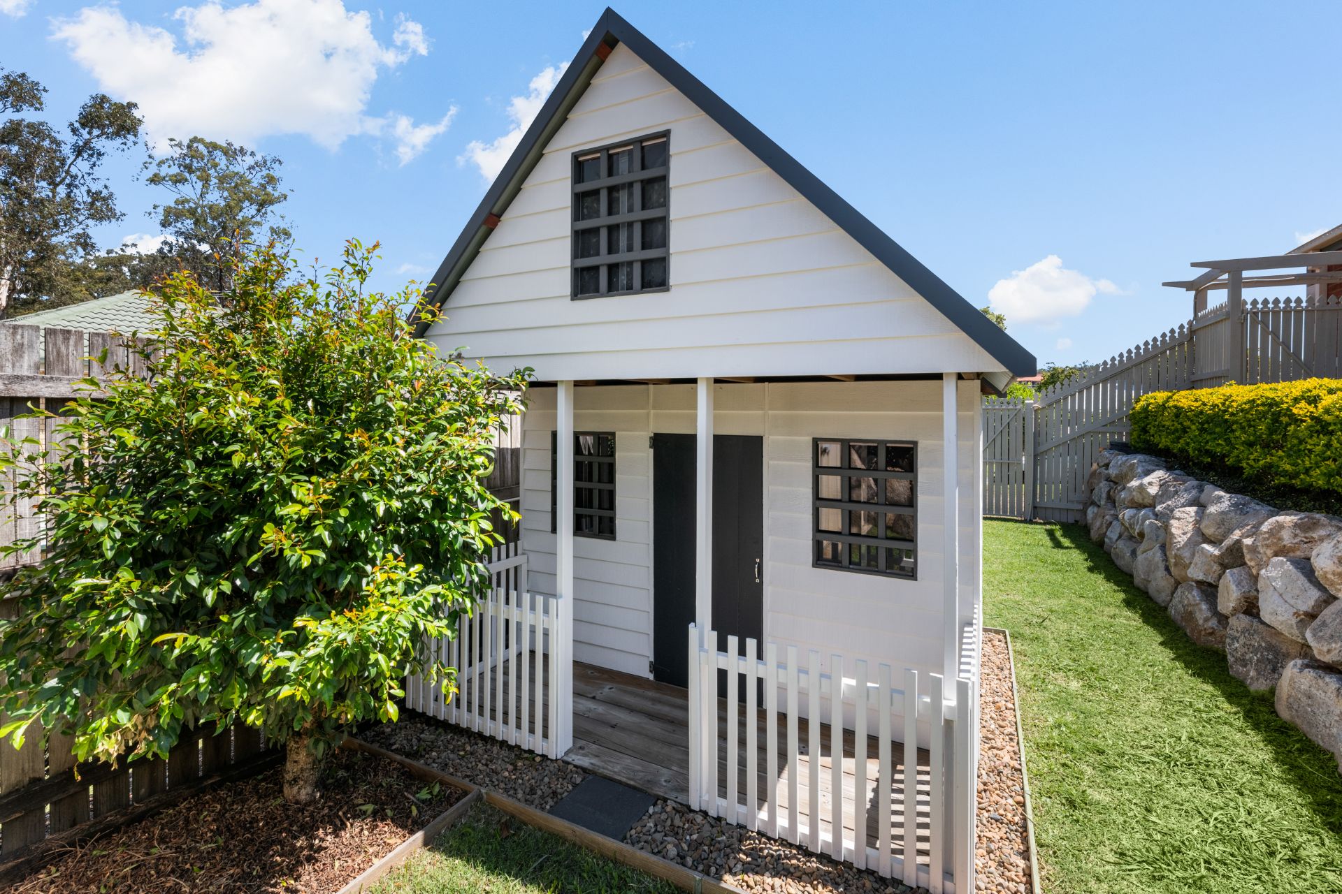 - Low maintenance landscaped yard with dream cubby house