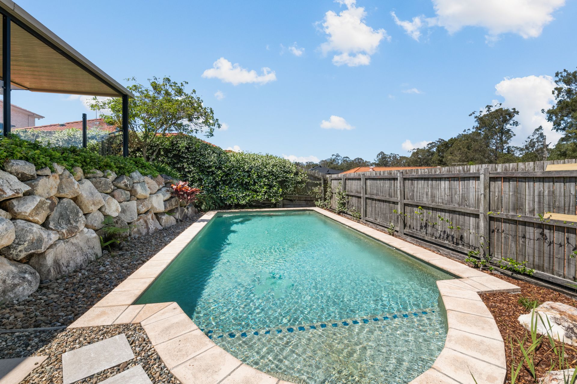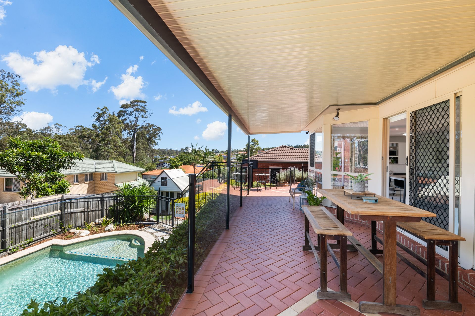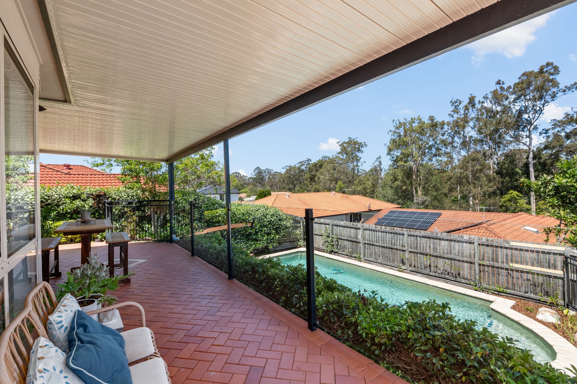 - The private, covered entertaining area at the rear of the home flows out from the home’s main living area and overlooks the beautiful in-ground swimming pool and bushland reserve. Featuring lighting and outdoor power, this is the perfect setting if you enjoy spending time outdoors in the privacy of your own oasis.
