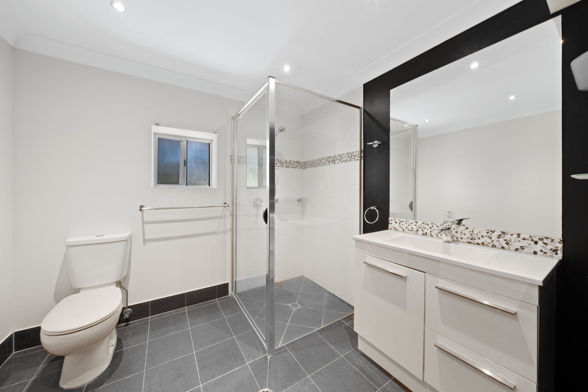 - Bathroom two is located downstairs and features tiled flooring, shower, single vanity exhaust fan/light combo and toilet.