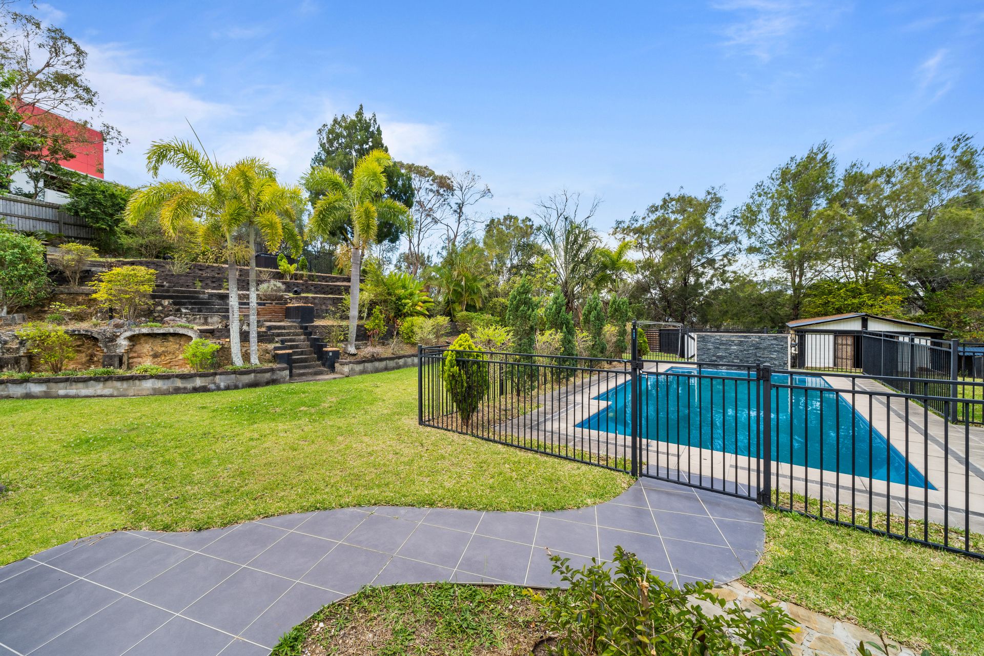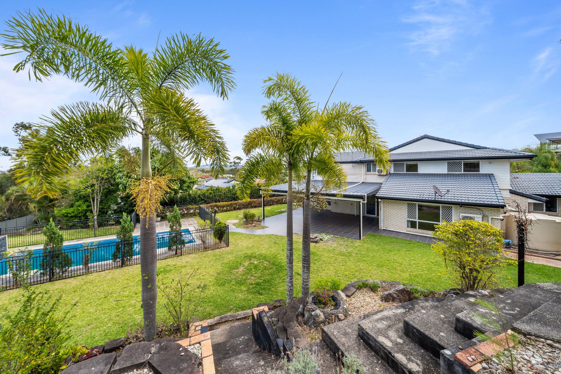 Expansive covered entertaining area overlooking an inviting in ground salt-water swimming pool is located just off the back of the home. There is even a spa area perched at the top of the garden overlooking this prestigious property! Monthly services included, chemicals at the tenants cost.