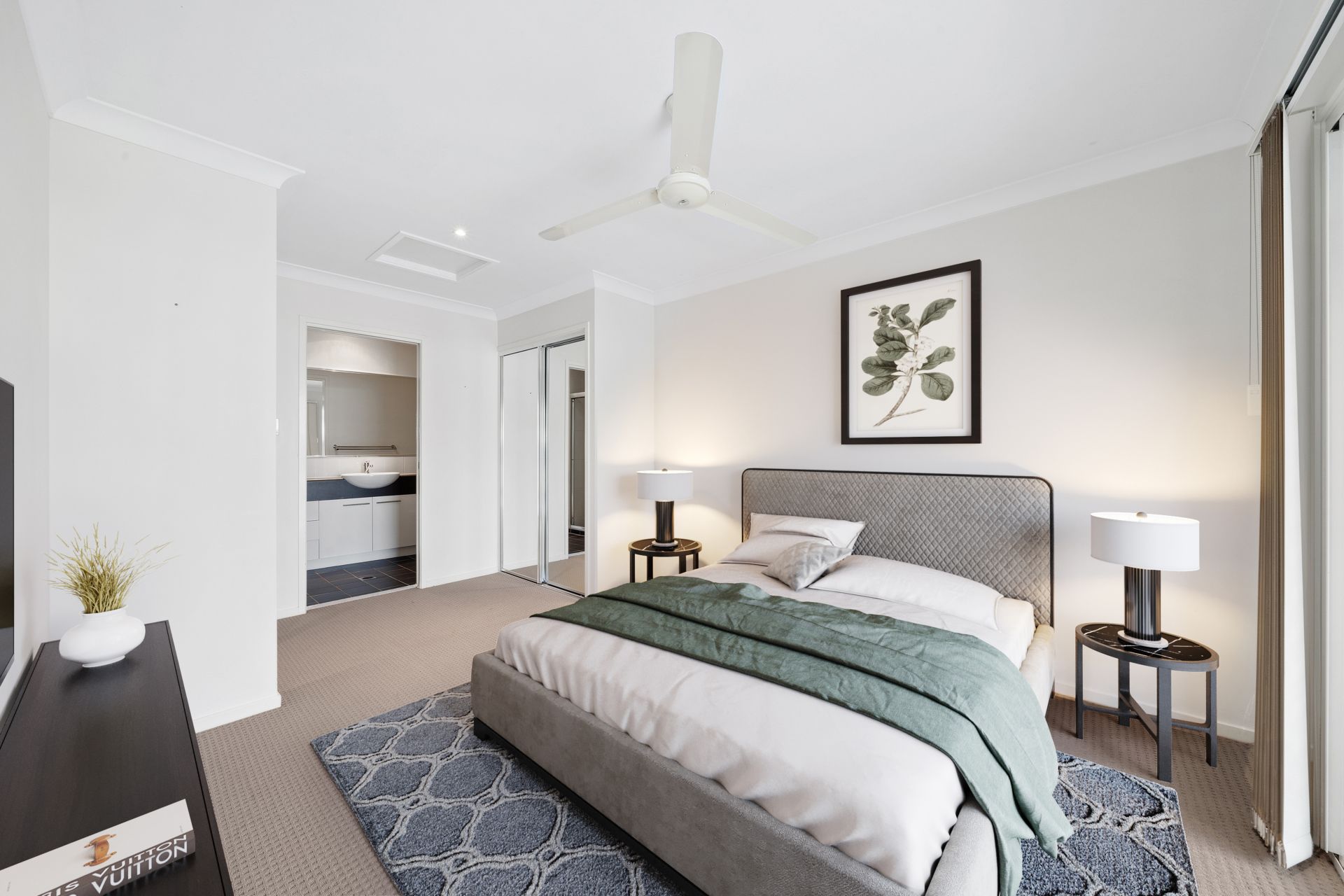 - The main bedroom is oversized and light-filled with direct access to the large balcony overlooking Eliza Lane. Freshly painted and new carpet the bedroom features double mirrored wardrobes, ceiling fans, new blinds and an ensuite.