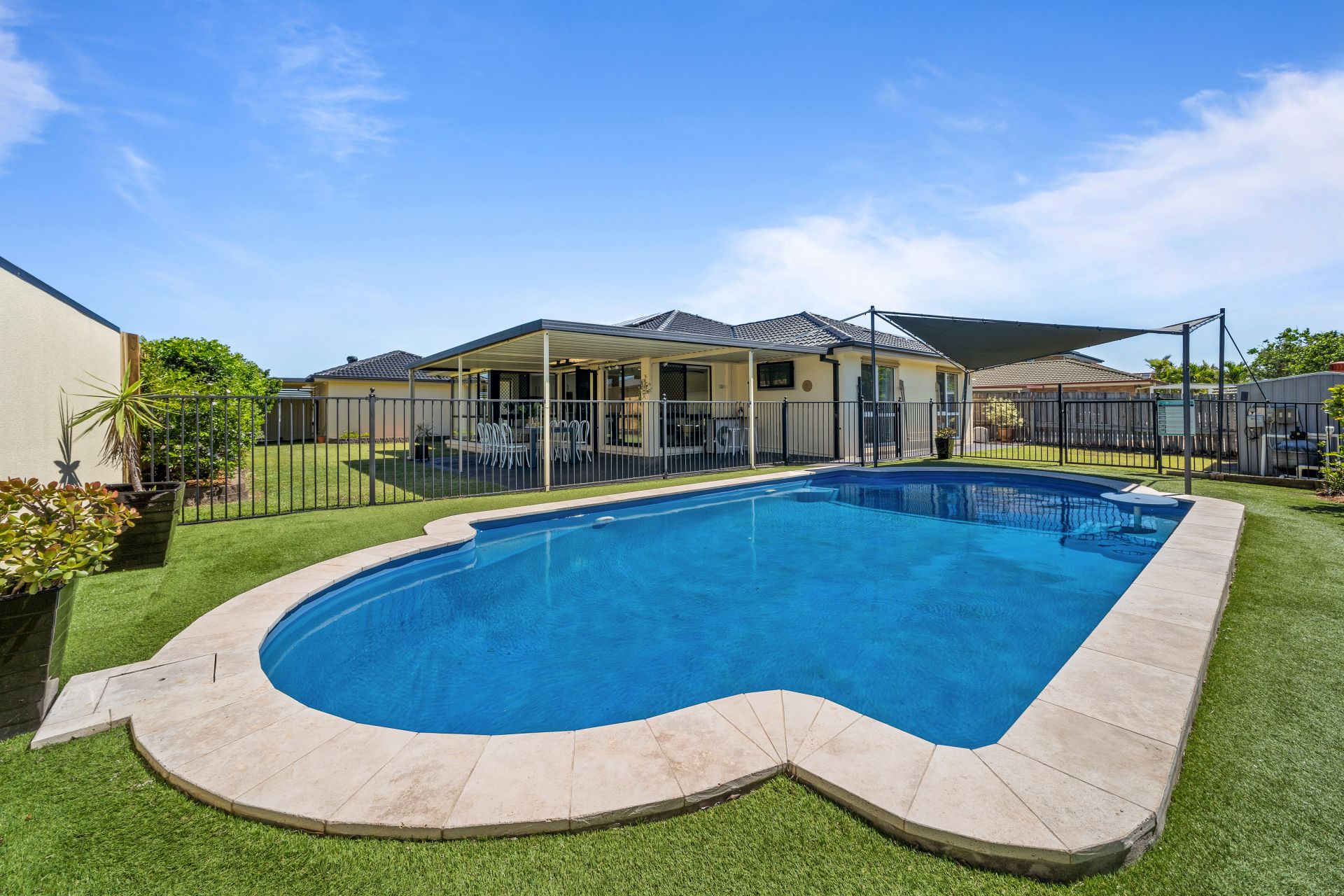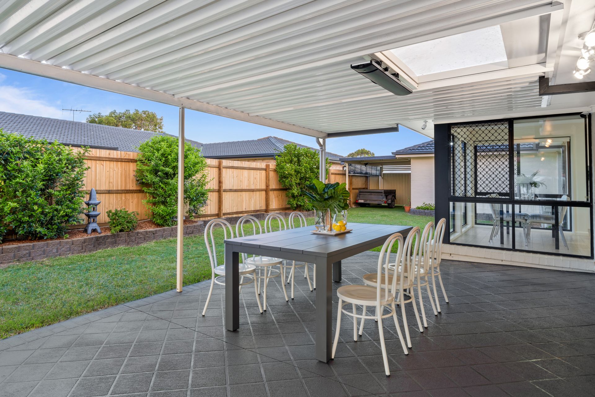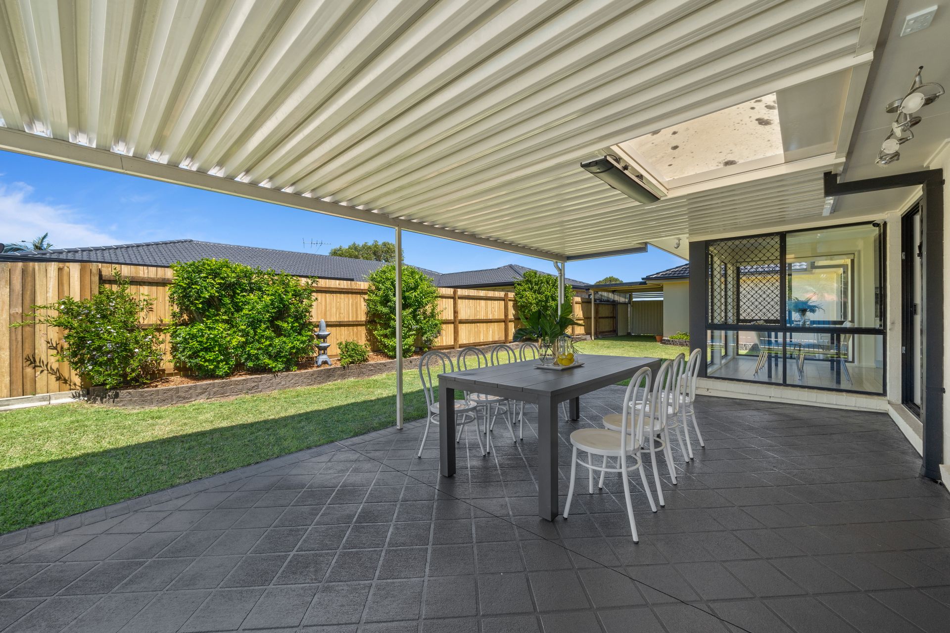- Outdoor entertaining will be a breeze thanks to the many options this home provides from the covered patio boasting paved flooring, outdoor lighting, built in benchtop, heat strip and outdoor power points, complimented by the glistening in-ground pool, surrounding garden beds and fully fenced kid/pet friendly yard, to the front deck offering a breath-taking city views, heat strip, outdoor power points, lush sculpted gardens and the fully enclosed split level kid/pet friendly front yard encapsulating everything there is to love about our Queensland lifestyle.