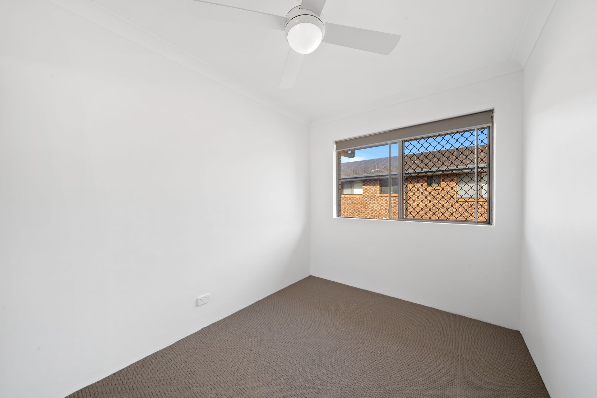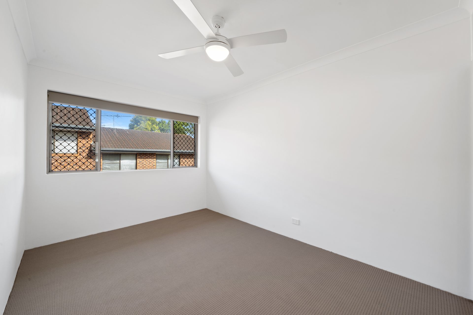 - Bedrooms features crisp white walls, roller blinds, security screens, a ceiling fan with light and a built-in wardrobe