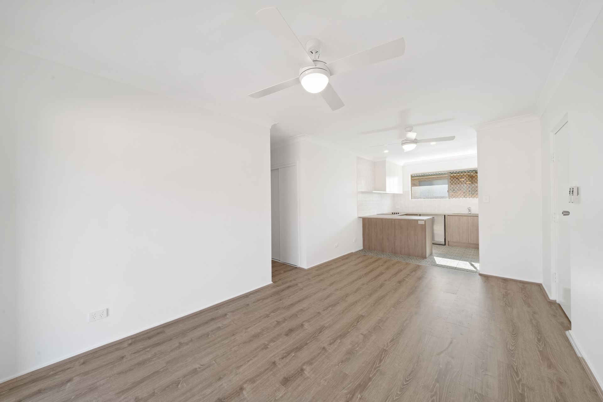 The open plan living area is the perfect place t shut out the world and enjoy some relaxation time. Fresh paintwork, wood-look timber flooring, blinds, ceiling fan with light flowing to the outdoor patio