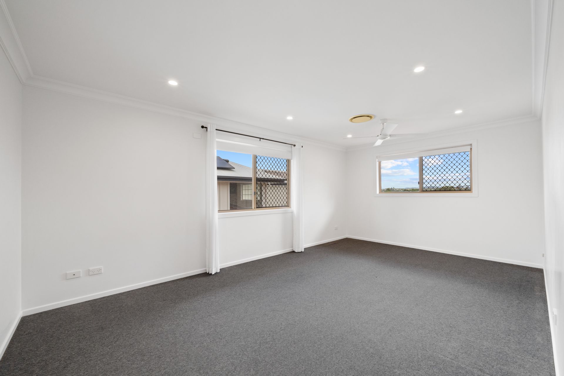 > The master is perfect for those who enjoy their own space, boasting an ensuite, ducted air-conditioning, ceiling fan, down lighting, carpet flooring, walk-in robe, sliding glass windows with fly screens, security grilles and combination of roller blinds and curtains.