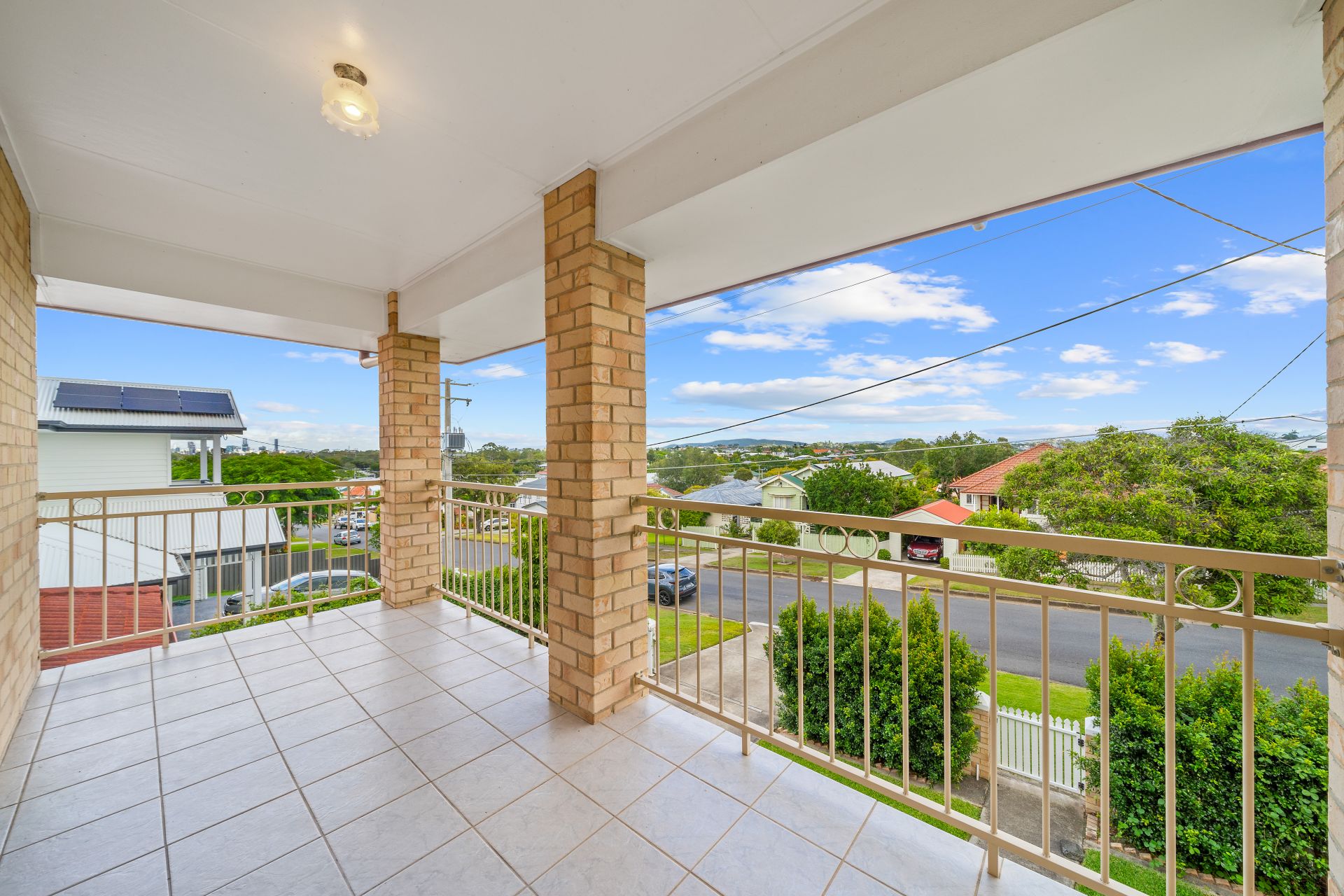> Bedroom 4 is palatial in size located at the front of the house on the top level boasting private balcony with city as well as Mt. Coot-tha views, carpet flooring, sliding windows and doors with fly screens, security grilles with roller blinds.