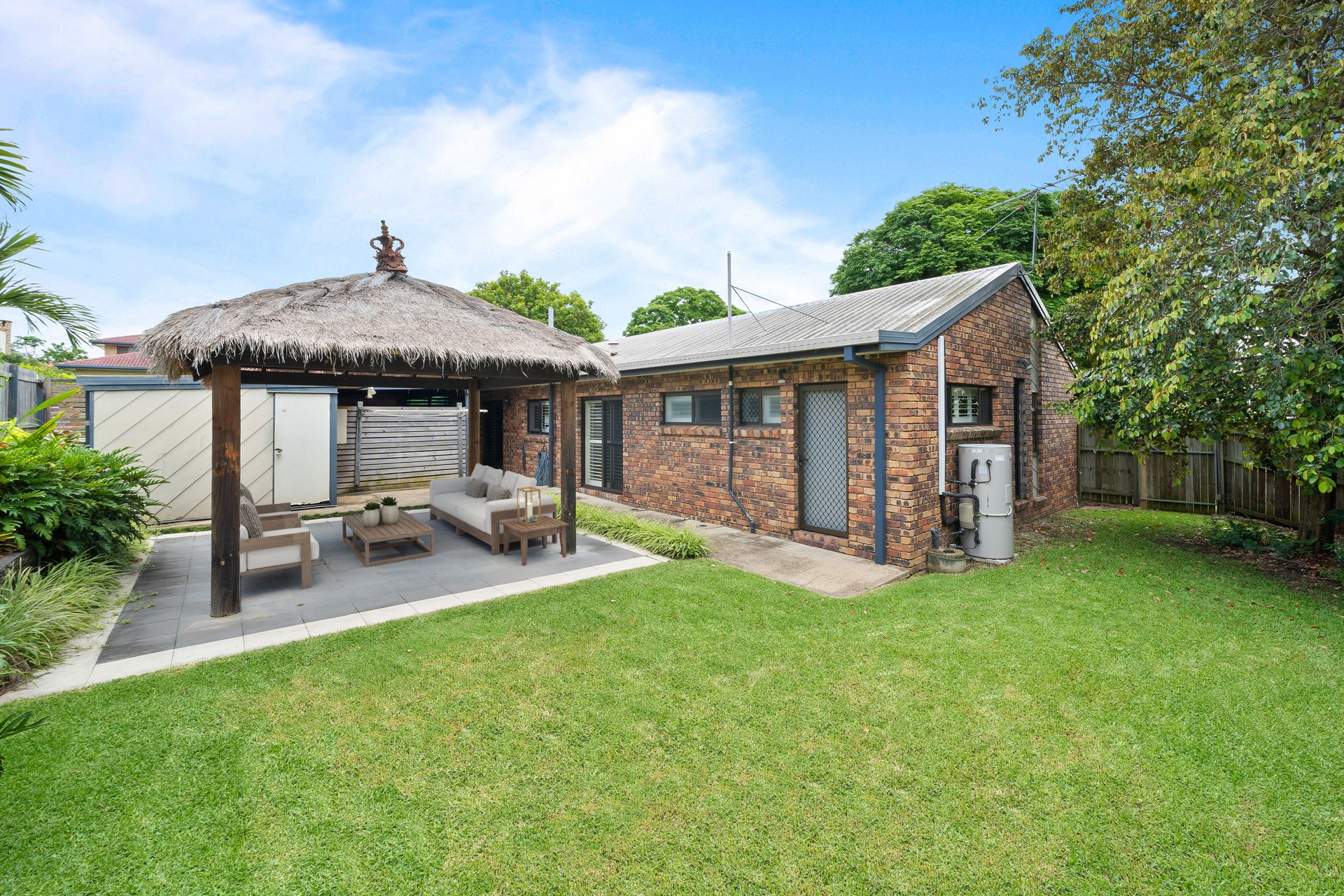> Outdoor entertaining will be a breeze thanks to the Balinese inspired hut with paved flooring and lighting giving you views over the yard, encapsulating everything there is to love about our Queensland lifestyle making it the perfect space to relax and unwind with family and friends