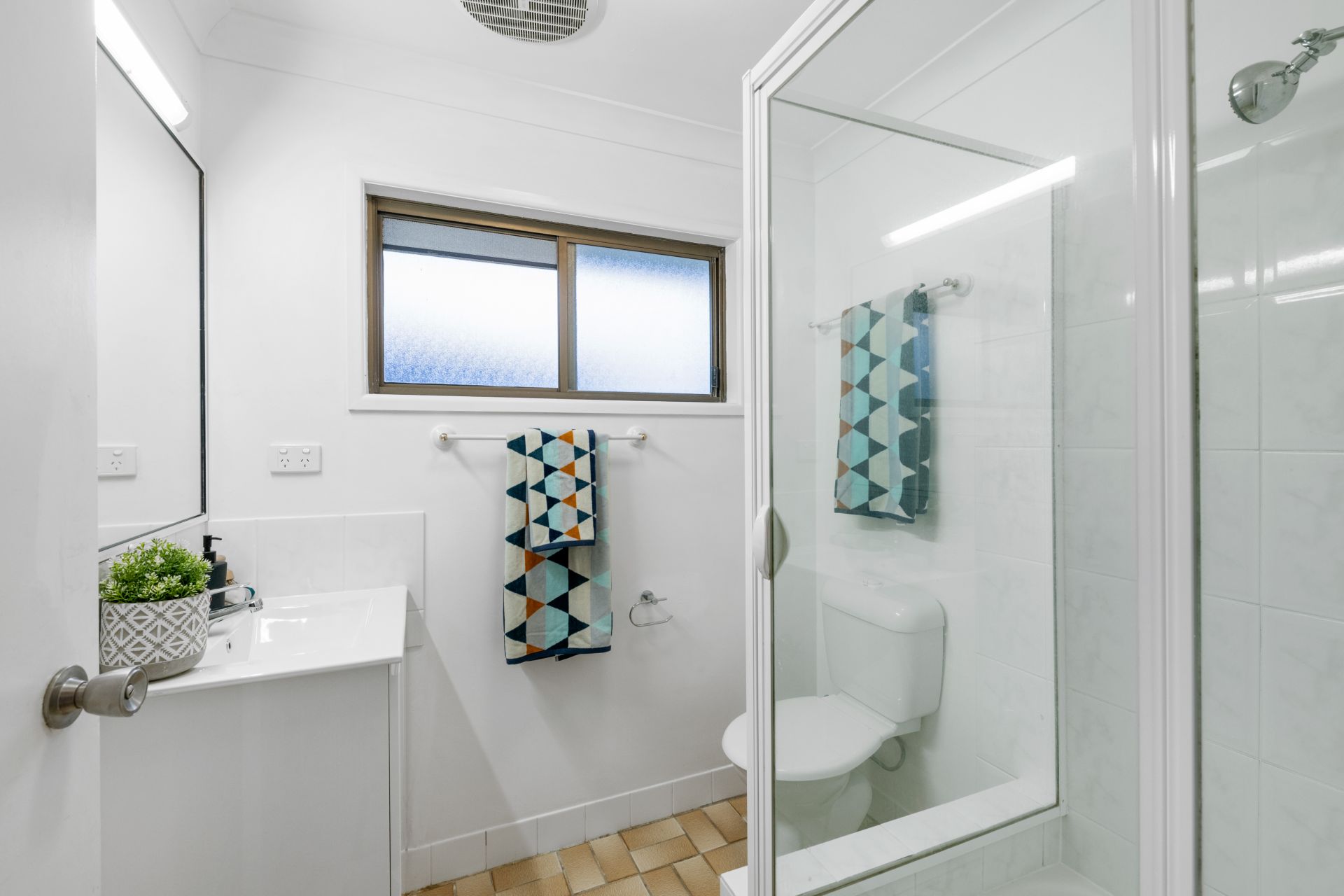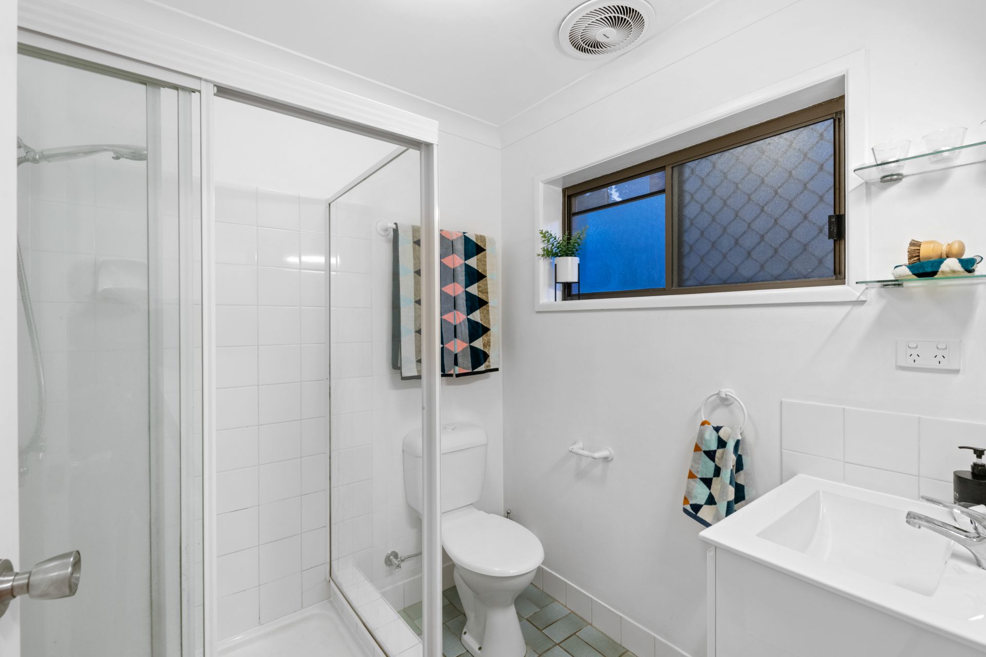 - Bathroom one is located on the ground floor and features tiled flooring, shower, single vanity with soft-close cabinetry and toilet.
