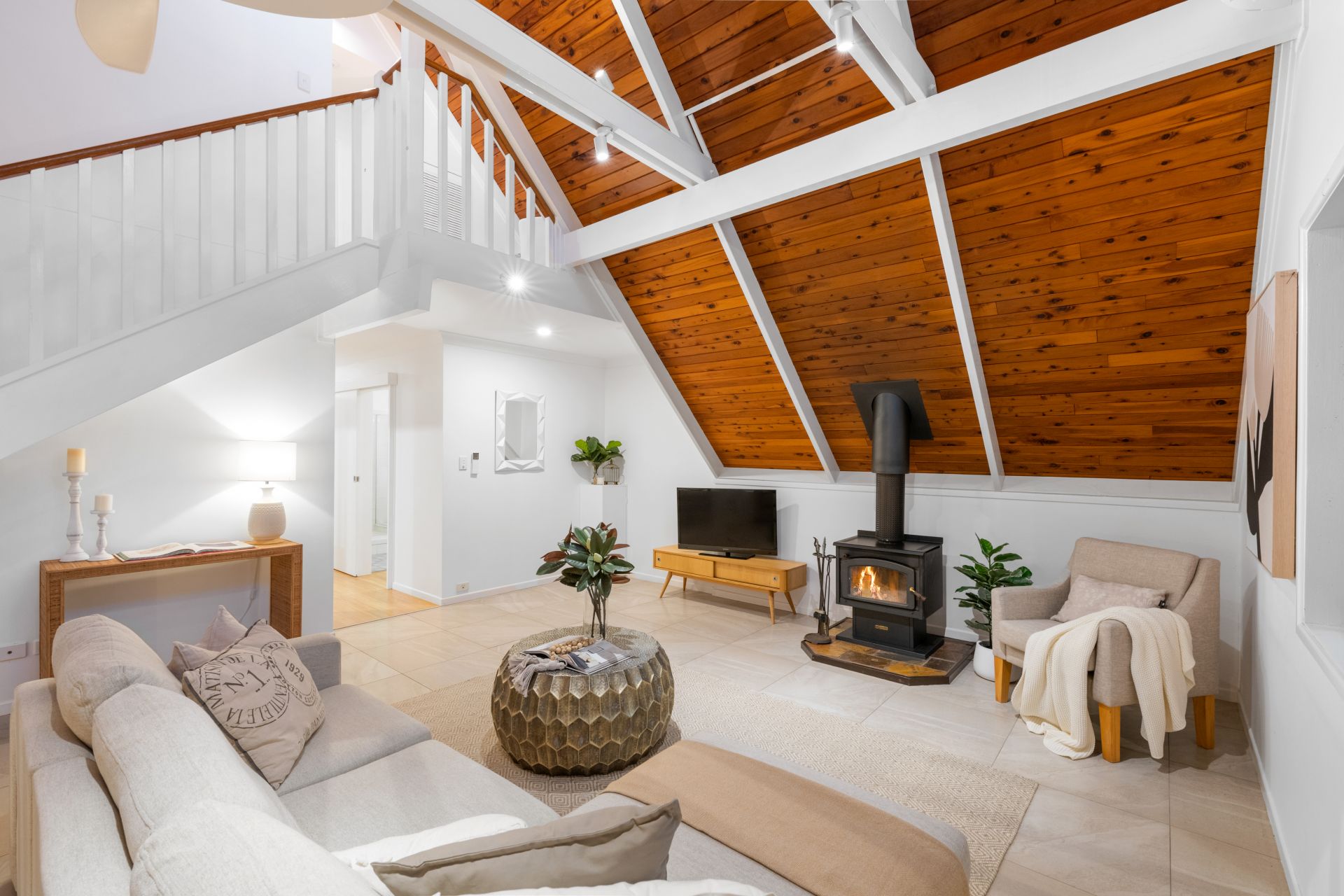 - Stunning 5.6m high cathedral ceiling