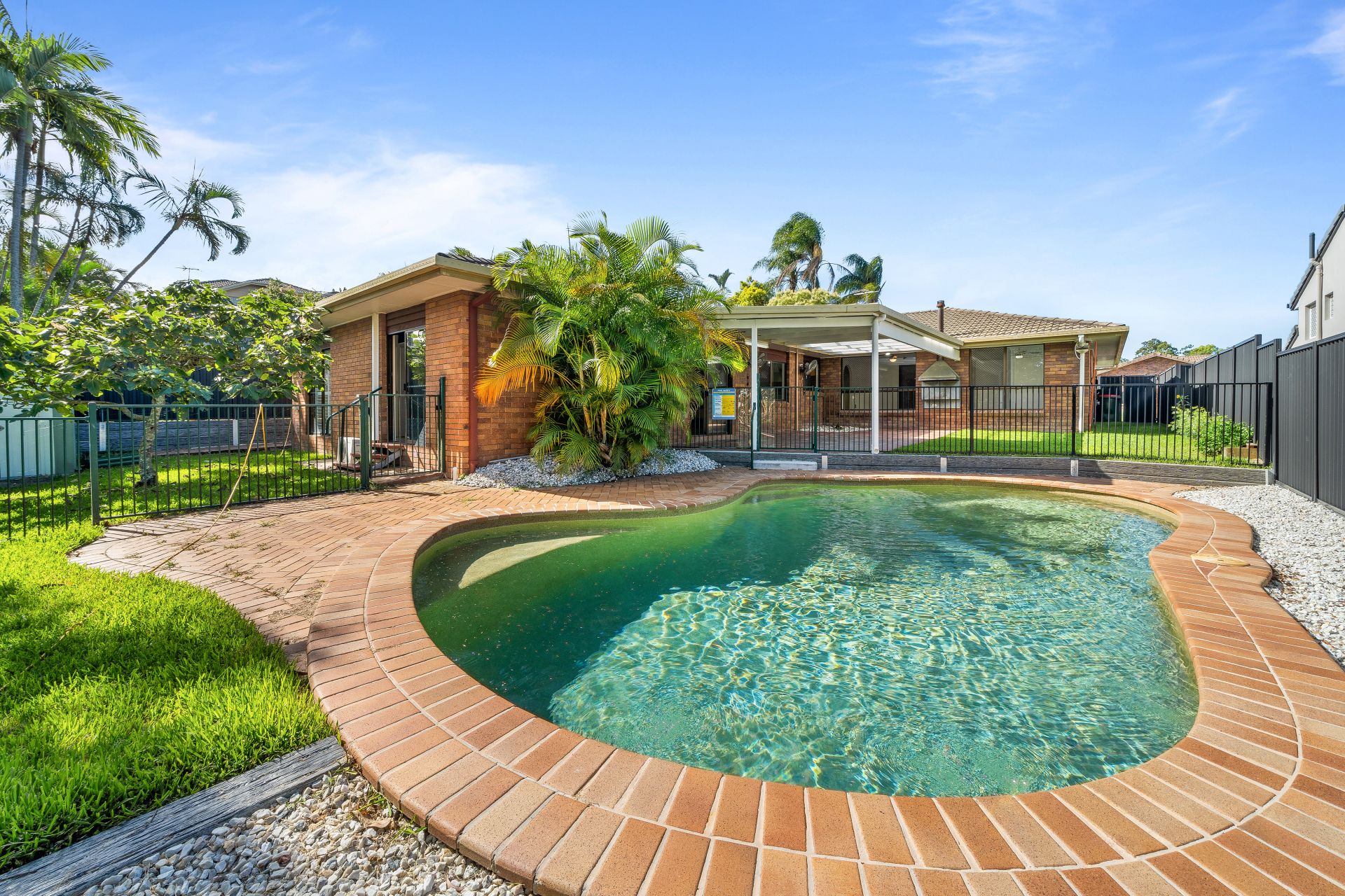 > Summer will be spent outside under the large covered outdoor area nestled beside the freeform swimming pool