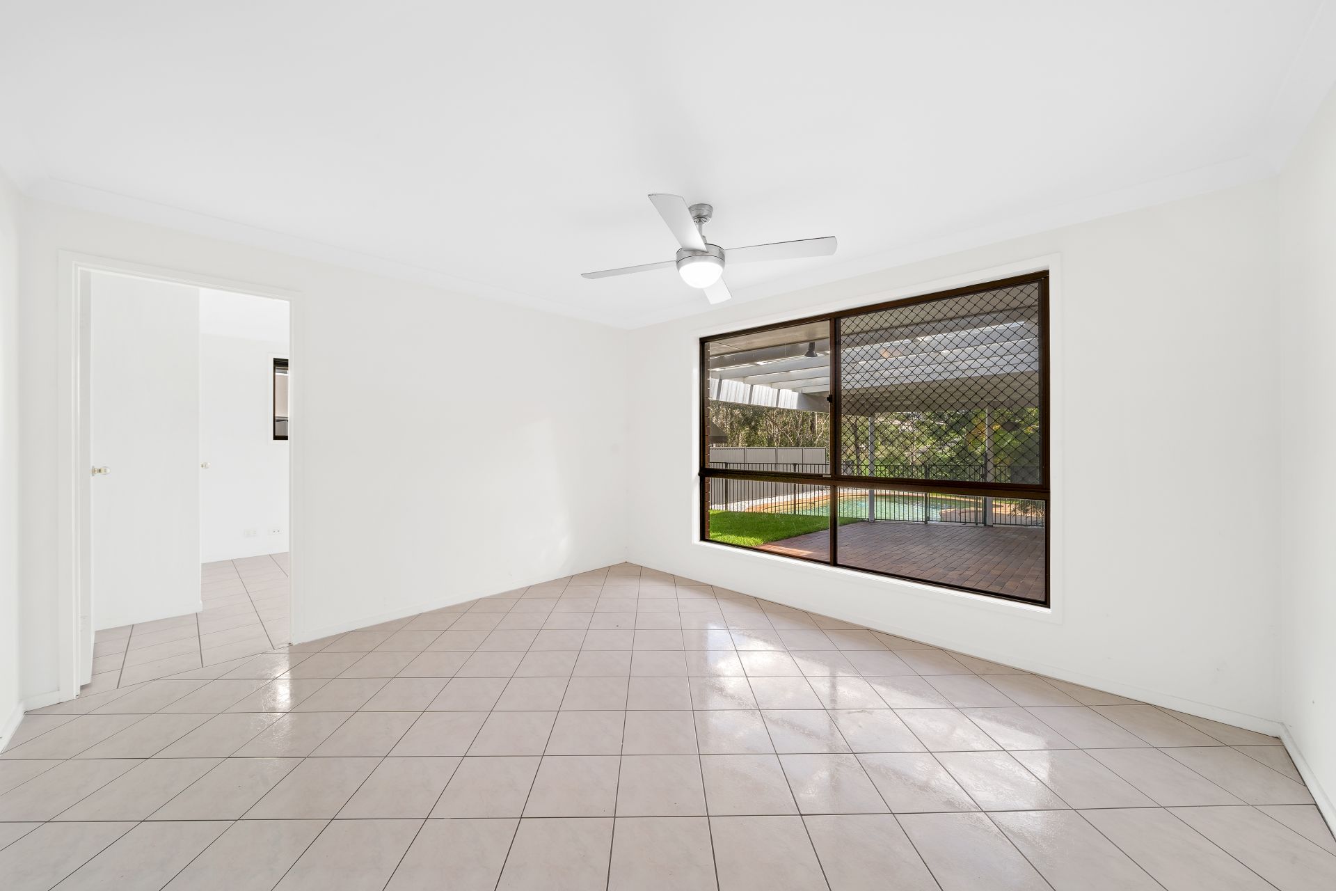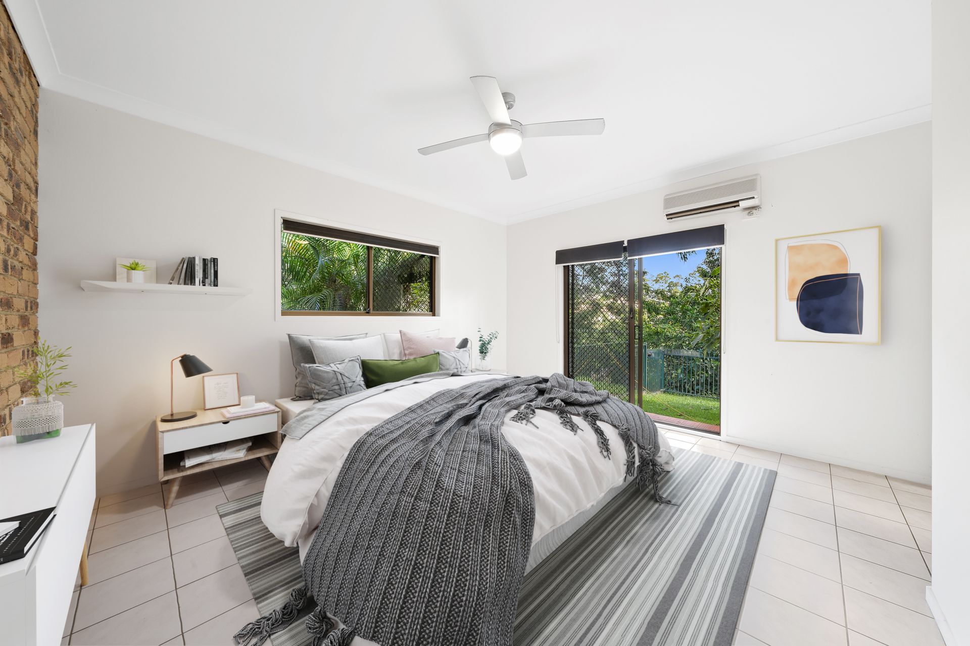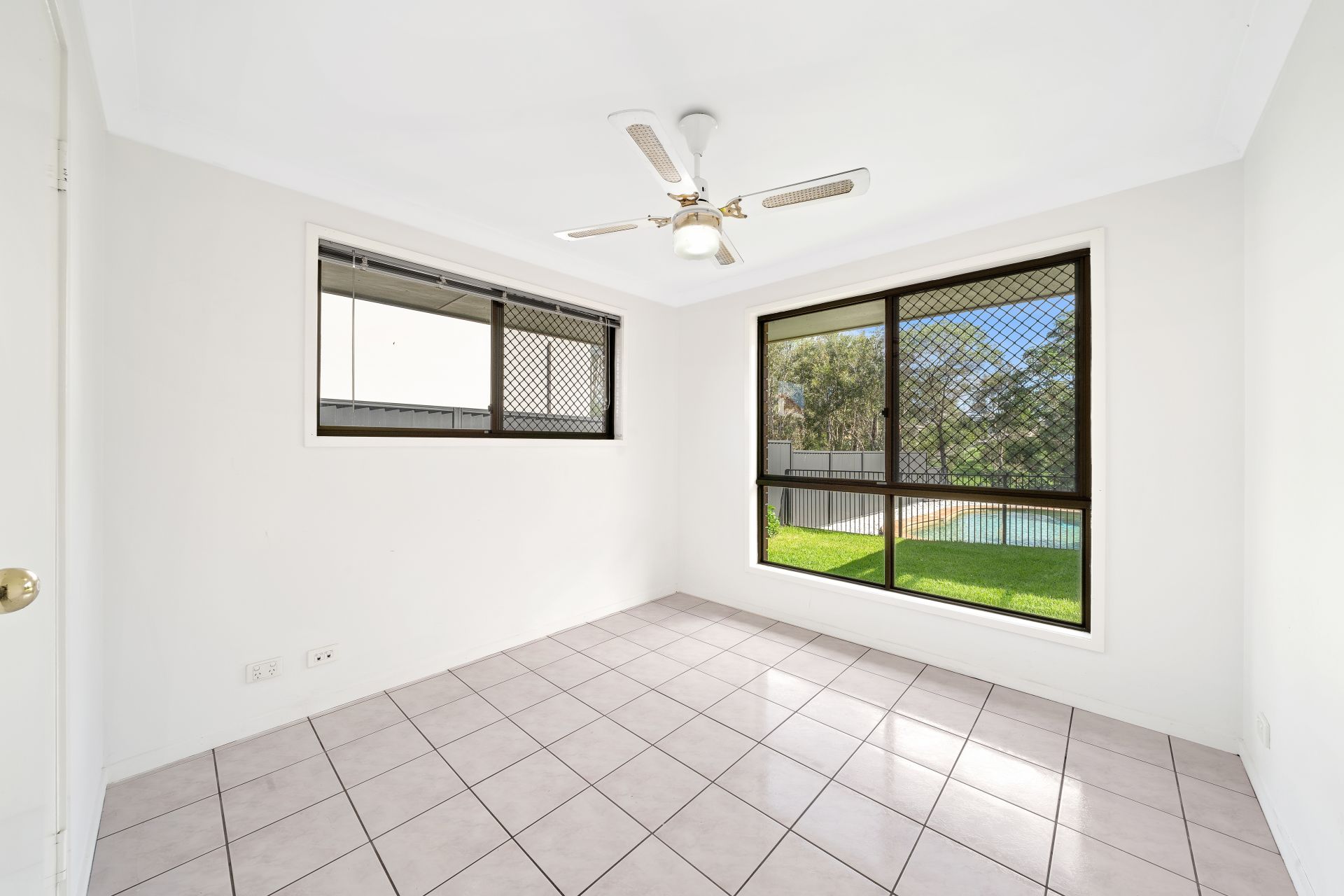 - Additional bedrooms feature neutral paintwork, white tiles, ceiling fan, window furnishings security screen tiles throughout, wardrobe. Bedroom two also features air-conditioning