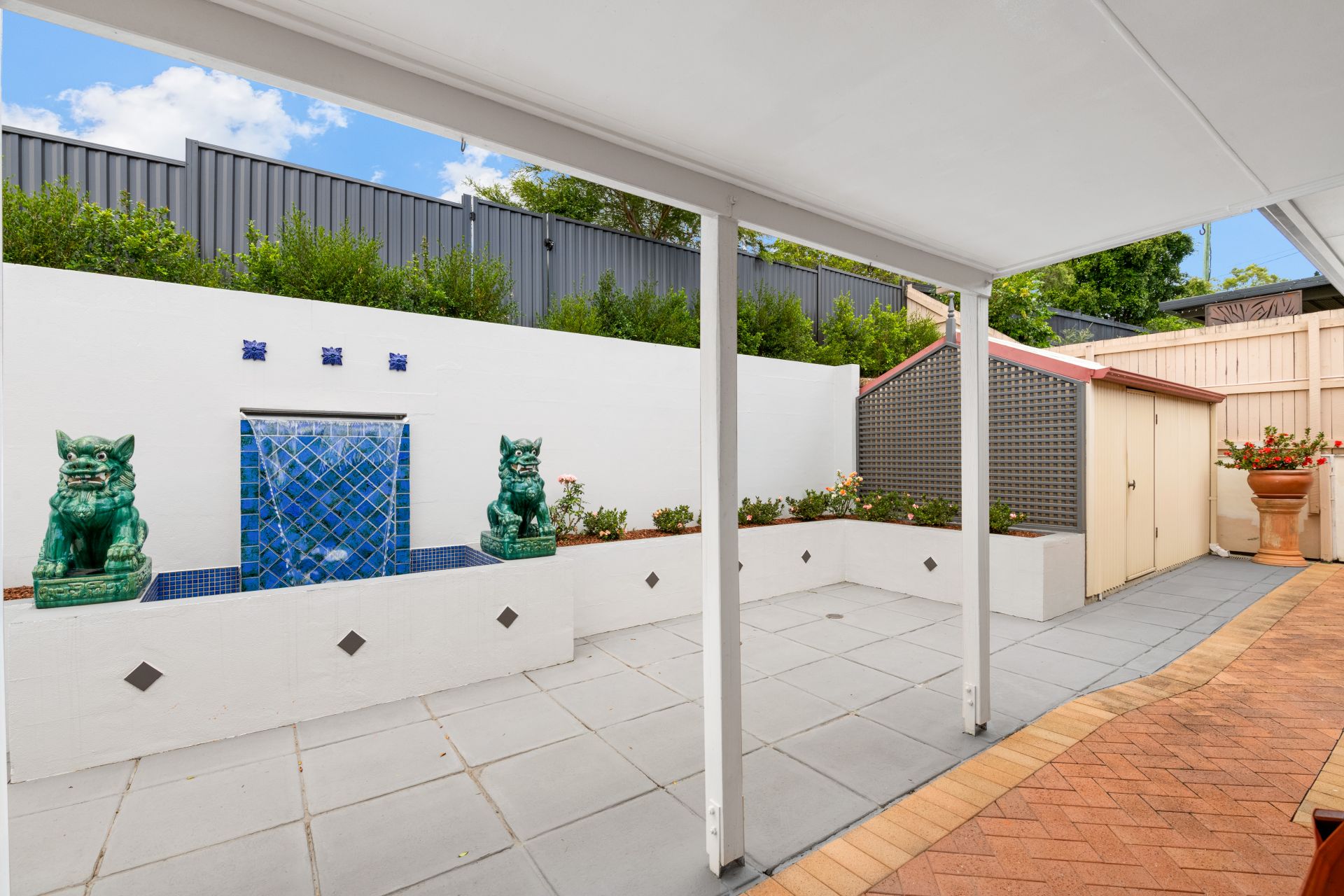 - Private outdoor entertaining area with water feature