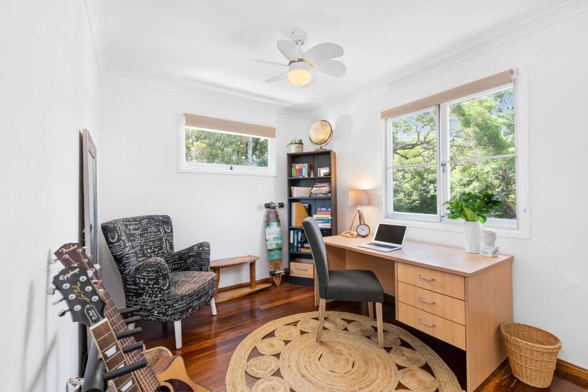 - Bedrooms two and three both feature polished timber flooring, built-in-robes, ceiling fans, roll-down blinds and original casement windows with screens.