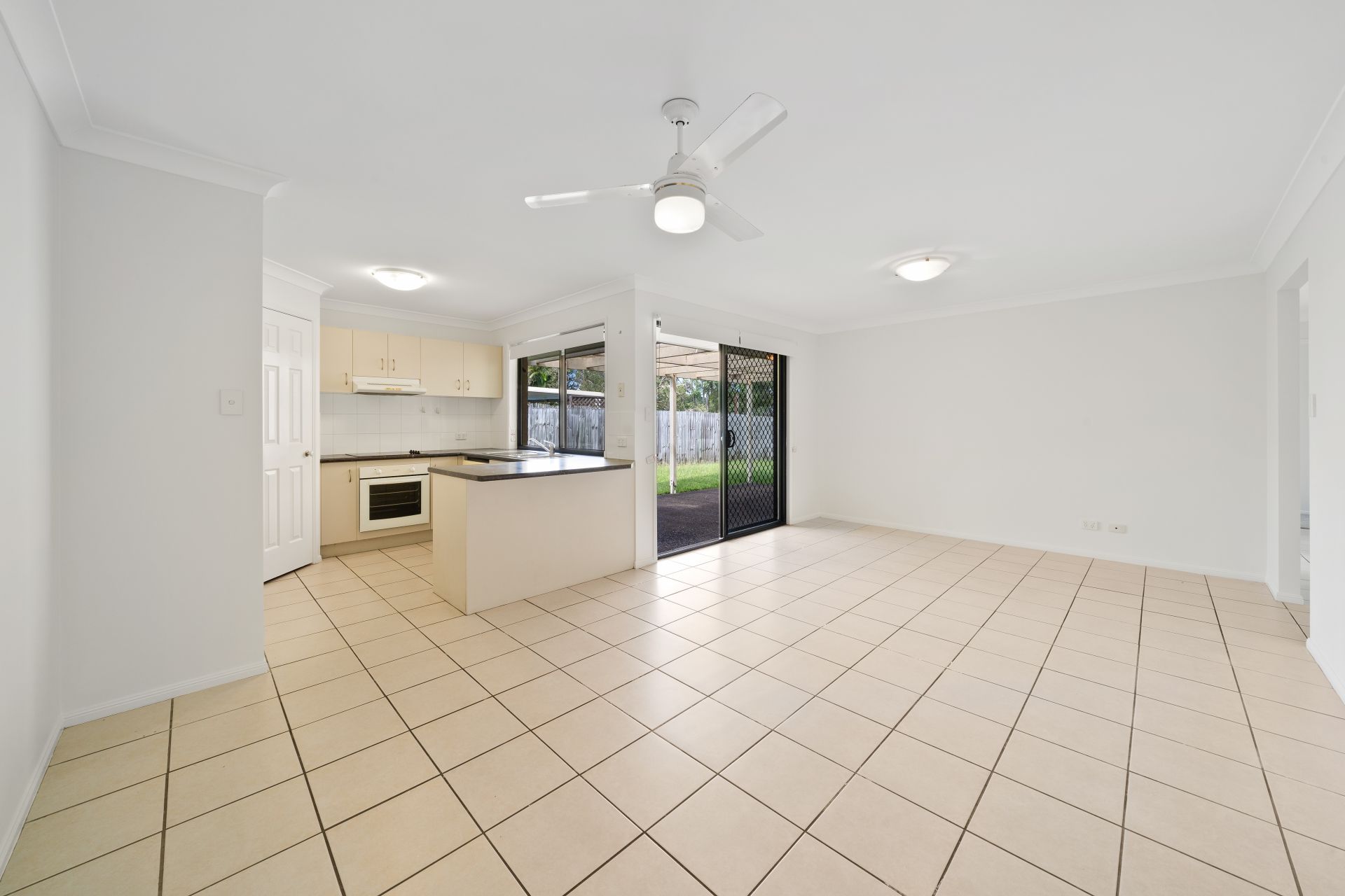 > Open-plan casual living which opens directly to the patio and fully fenced low maintenance yard. Fresh paintwork, security screens, ceiling fan and tiled flooring make this room ultra-flexible