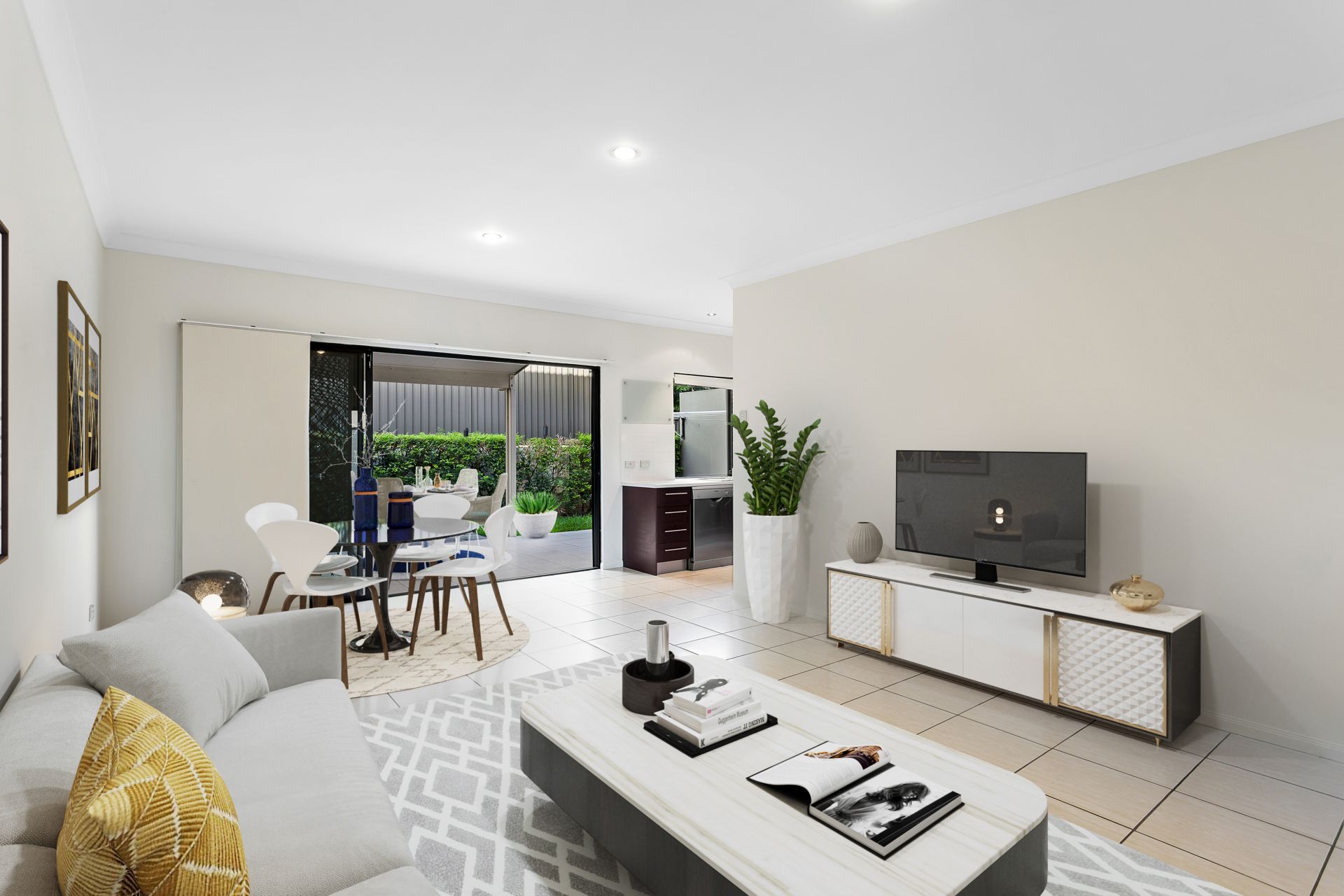 > Freshly painted, the lounge and dining area are one flexible space which flows directly to the outdoor entertaining area. Split-system air-conditioner and tiled inside and out the stacking glass door with security screen allows the low maintenance courtyard into the home.