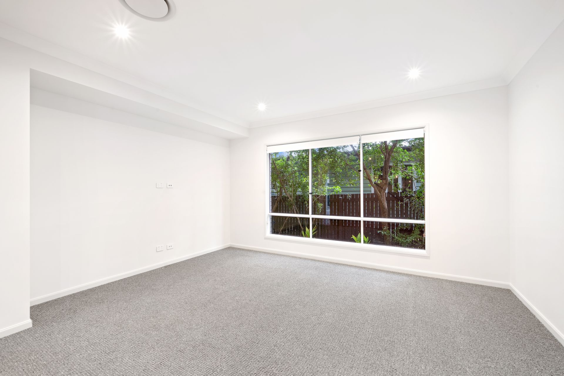 > Located at the front of the home is the home office/study featuring extra-high ceiling, ducted air-conditioning, plush carpet flooring, combination of sliding and awning windows with roller blinds and downlighting.