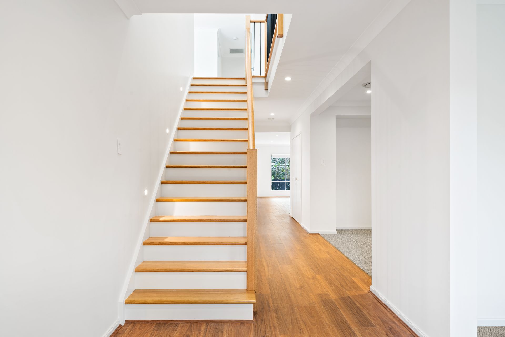 - The laundry located on the entry level features large wash tub, 20mm stone bench tops, laminate cabinetry and separate access to the yard and garage.