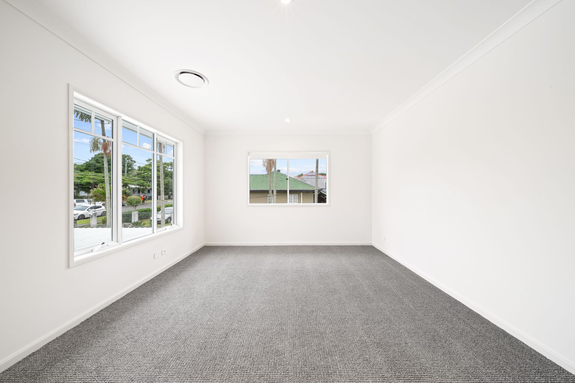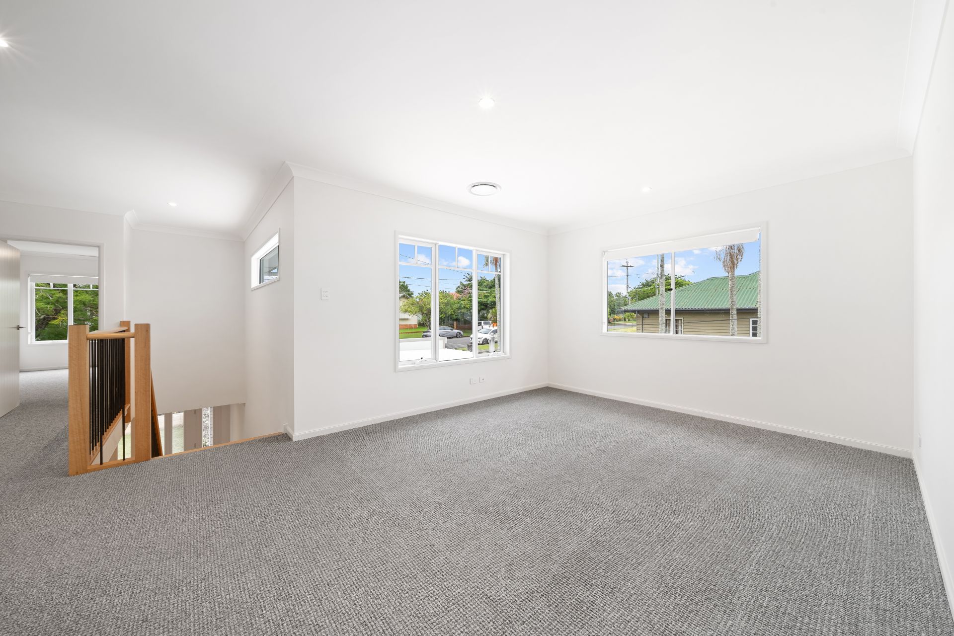 > Located on the top level is the second lounge featuring extra high ceilings, ducted air-conditioning, plush carpet flooring, combination of sliding and awning windows with roller blinds and down-lighting.
