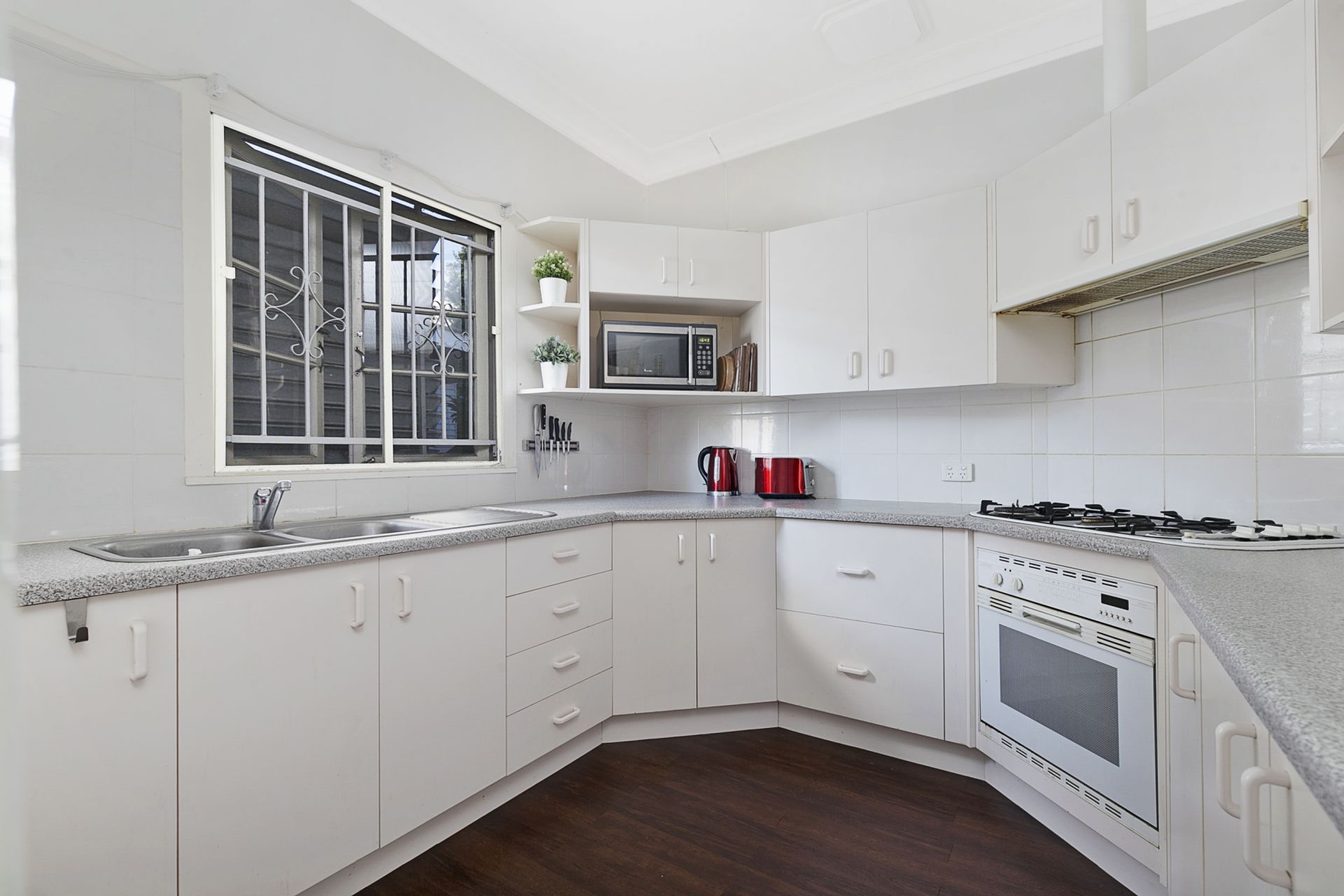 - The kitchen is neatly tucked away at the back of the home and features, a five-burner gas cooktop, plenty of cupboards, a double stainless steel sink and plenty of bench space, screens and security bars.