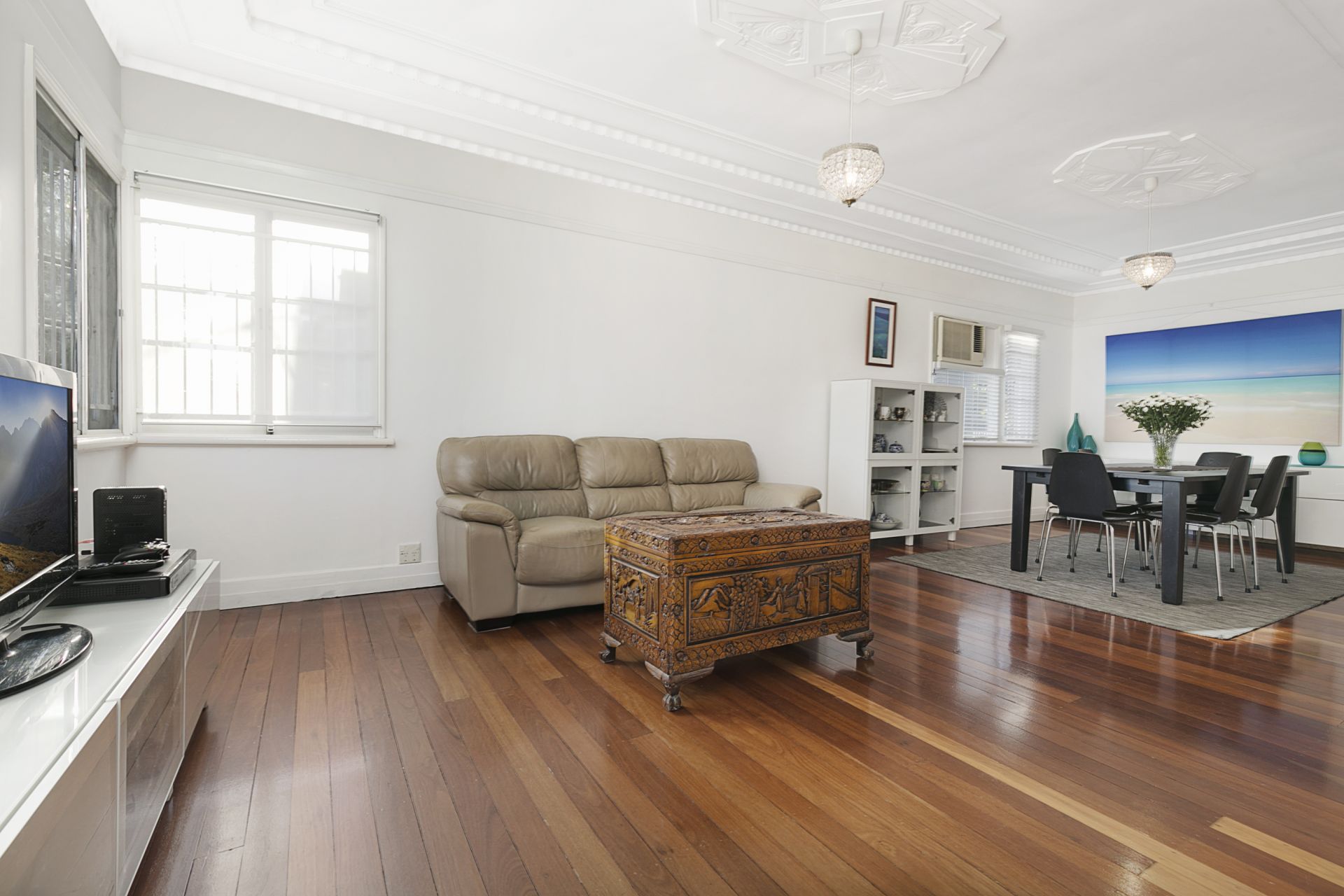 > Large lounge room with polished timber floors, enjoys ornate ceilings and cornice plus a box air-conditioner
