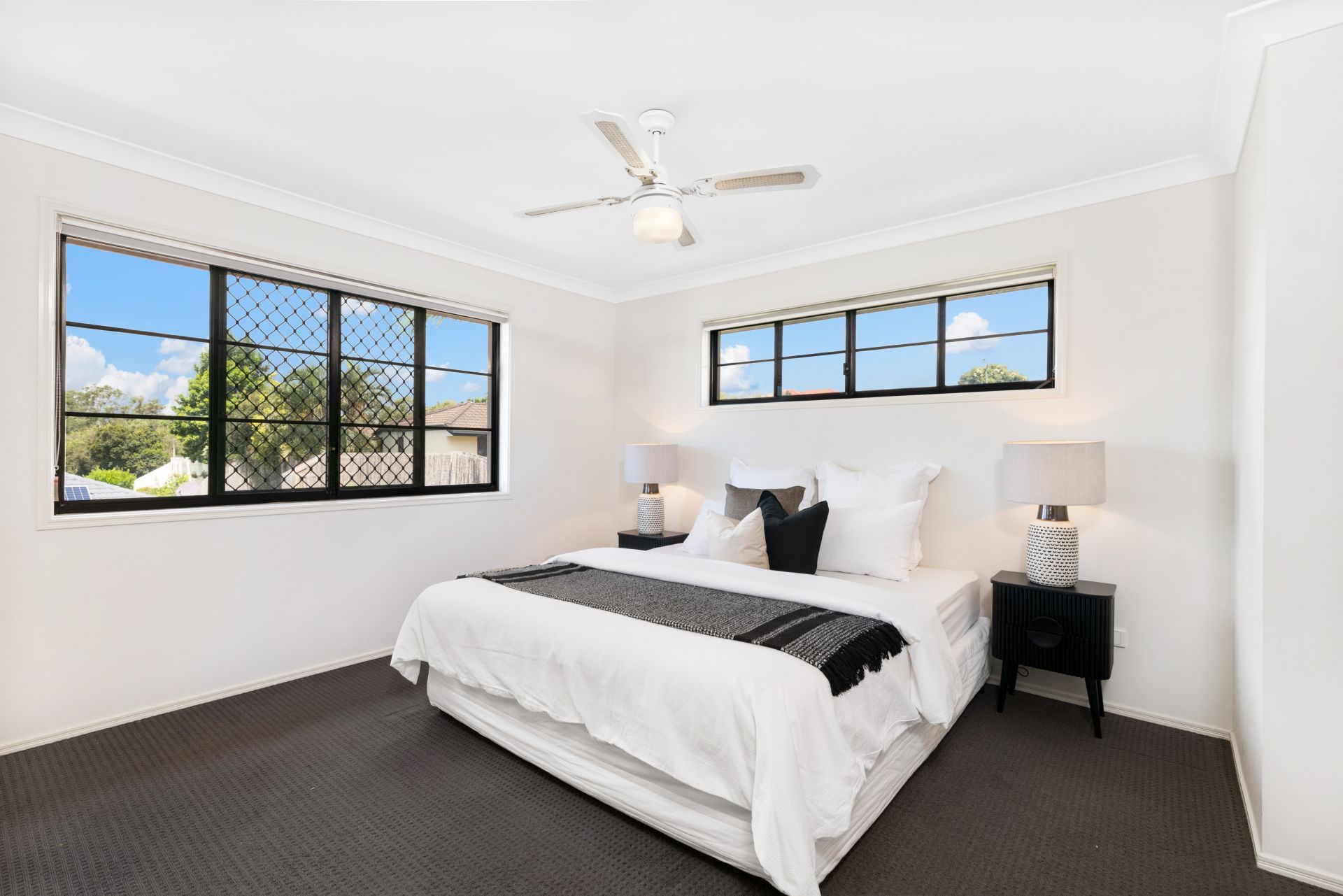 - Bedrooms two, three and four all feature carpeted flooring, large built-in-robes, ceiling fans and roll-down blinds.
