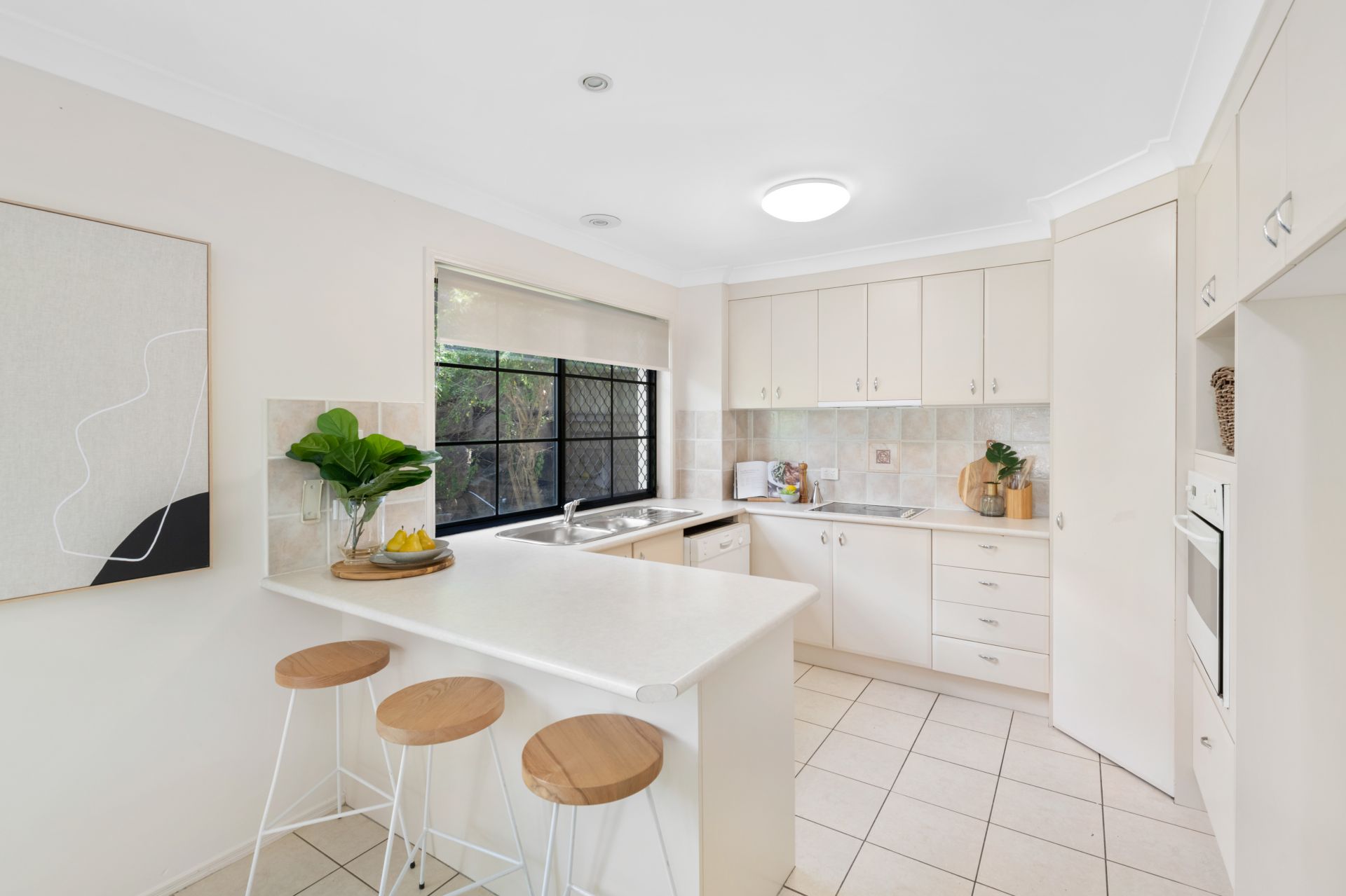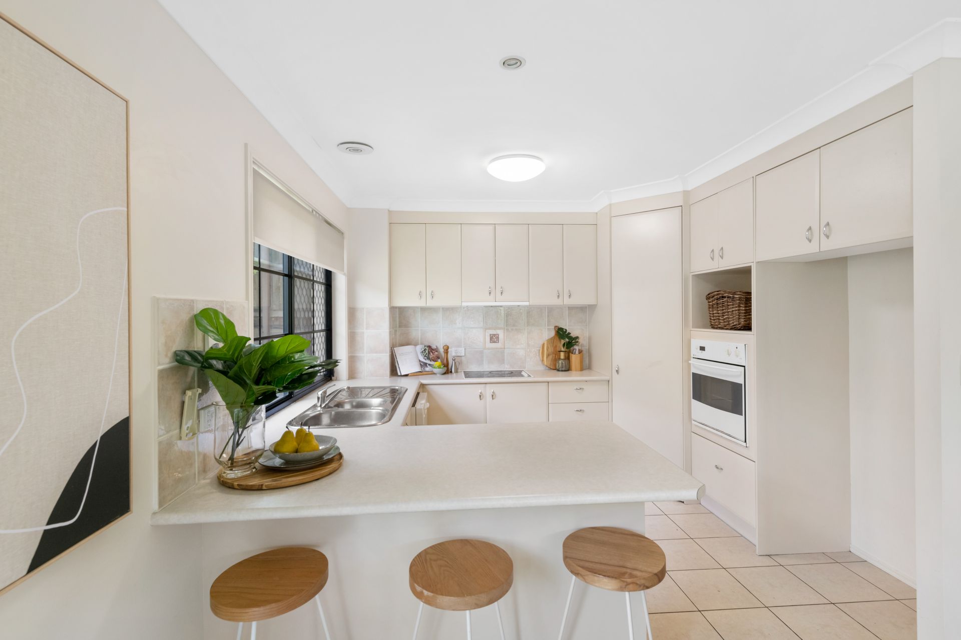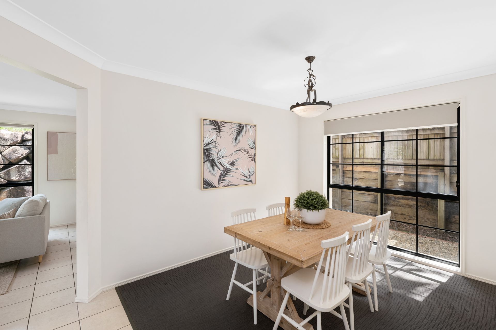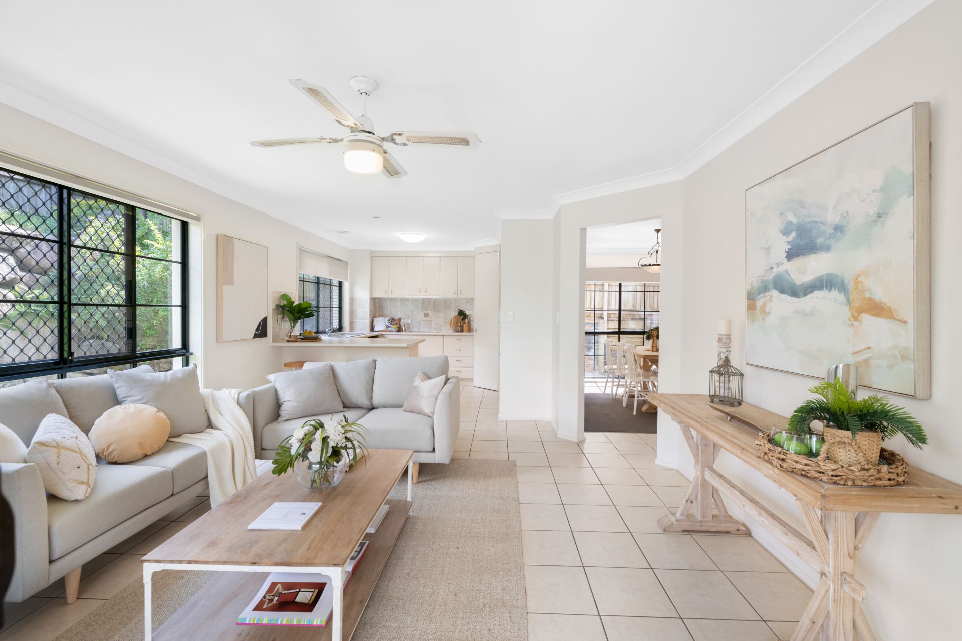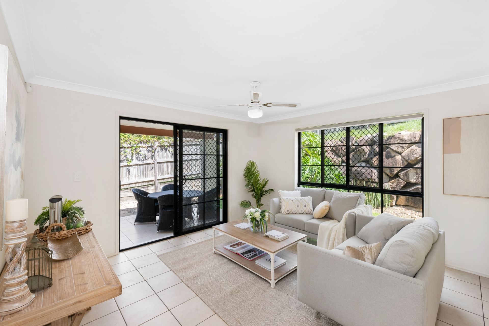 - The living room is conveniently set beside the homes kitchen and features tiled flooring, ceiling fan and access to the outdoor entertaining area and backyard.