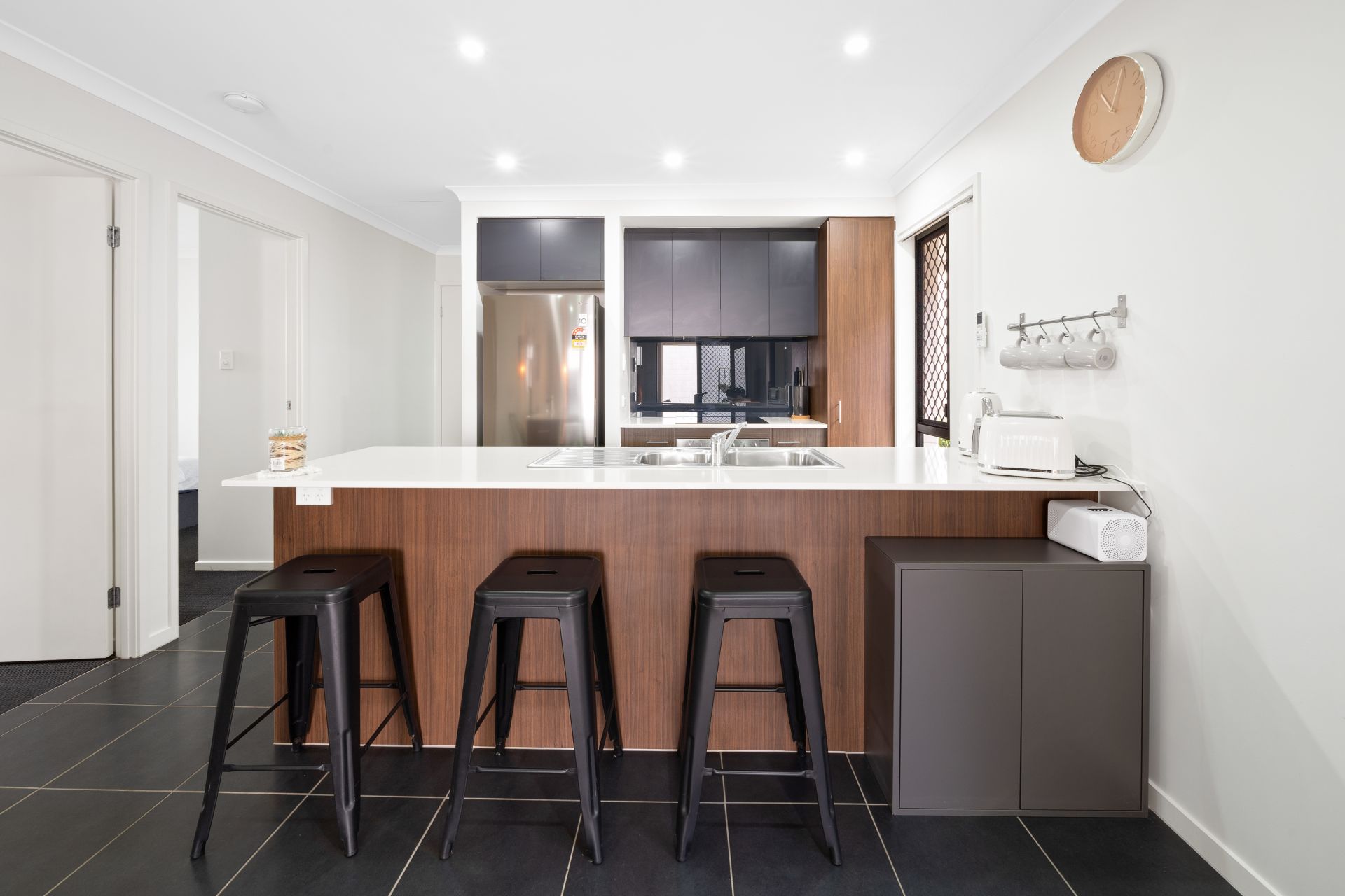 - Sleek kitchen: