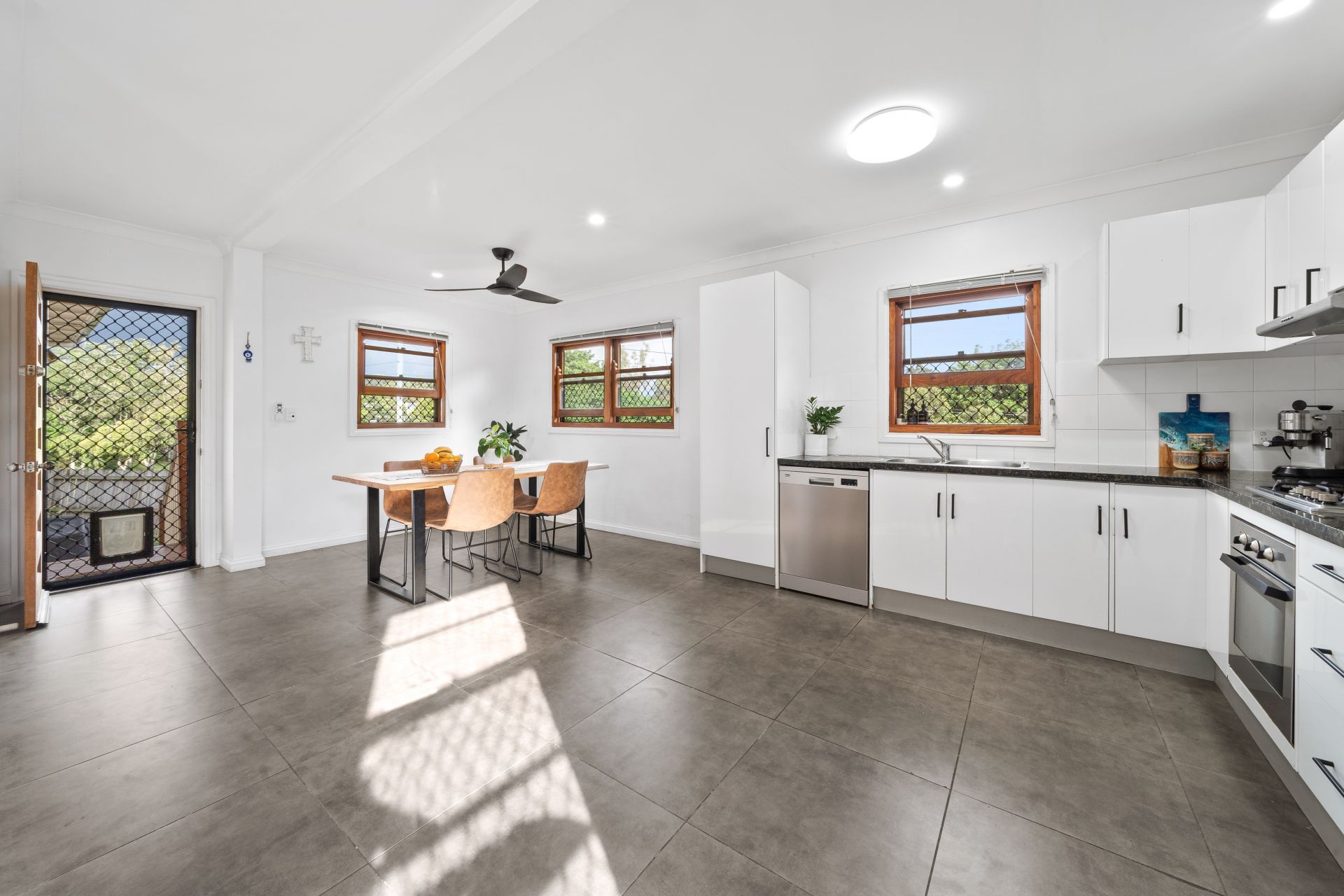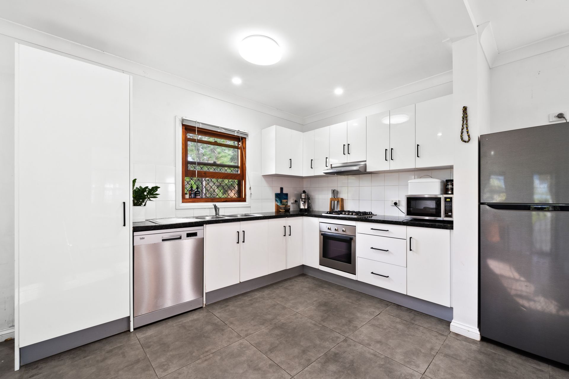 - Open plan kitchen features: