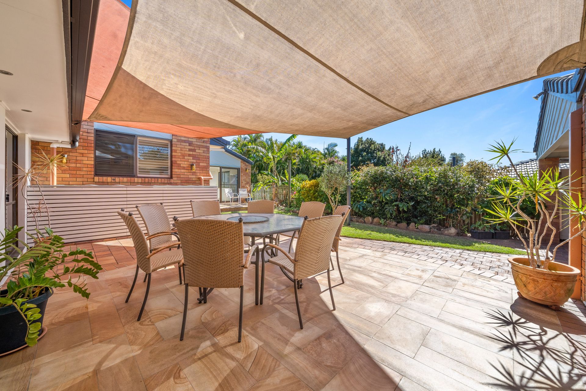 - Outdoor entertaining will be a breeze thanks to the many options this home provides from the covered patio boasting paved flooring, outdoor lighting, shade sails, to the alfresco entertaining area near the granny flat, surrounded by the lush garden beds and a fully fenced kid/pet friendly yard, encapsulating everything there is to love about our Queensland lifestyle.