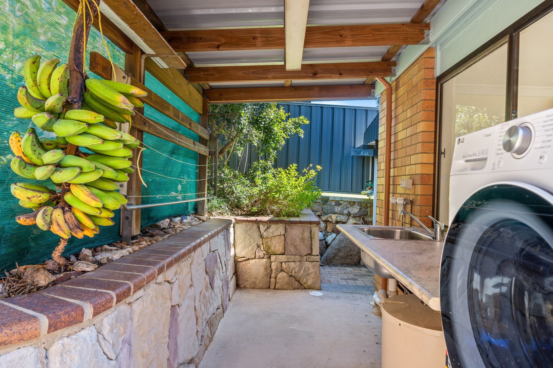 - The external laundry features laminate bench tops with wash tub, power points and lighting.