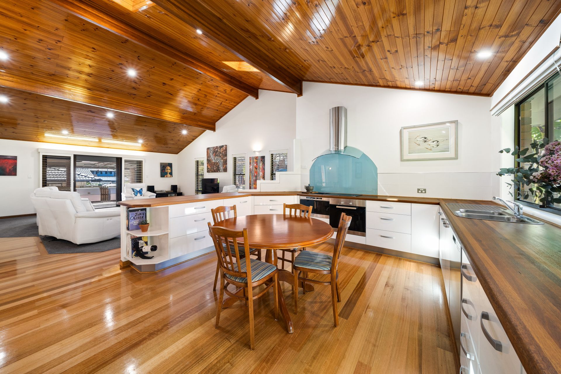 > 4.2m timber cladded raked ceilings