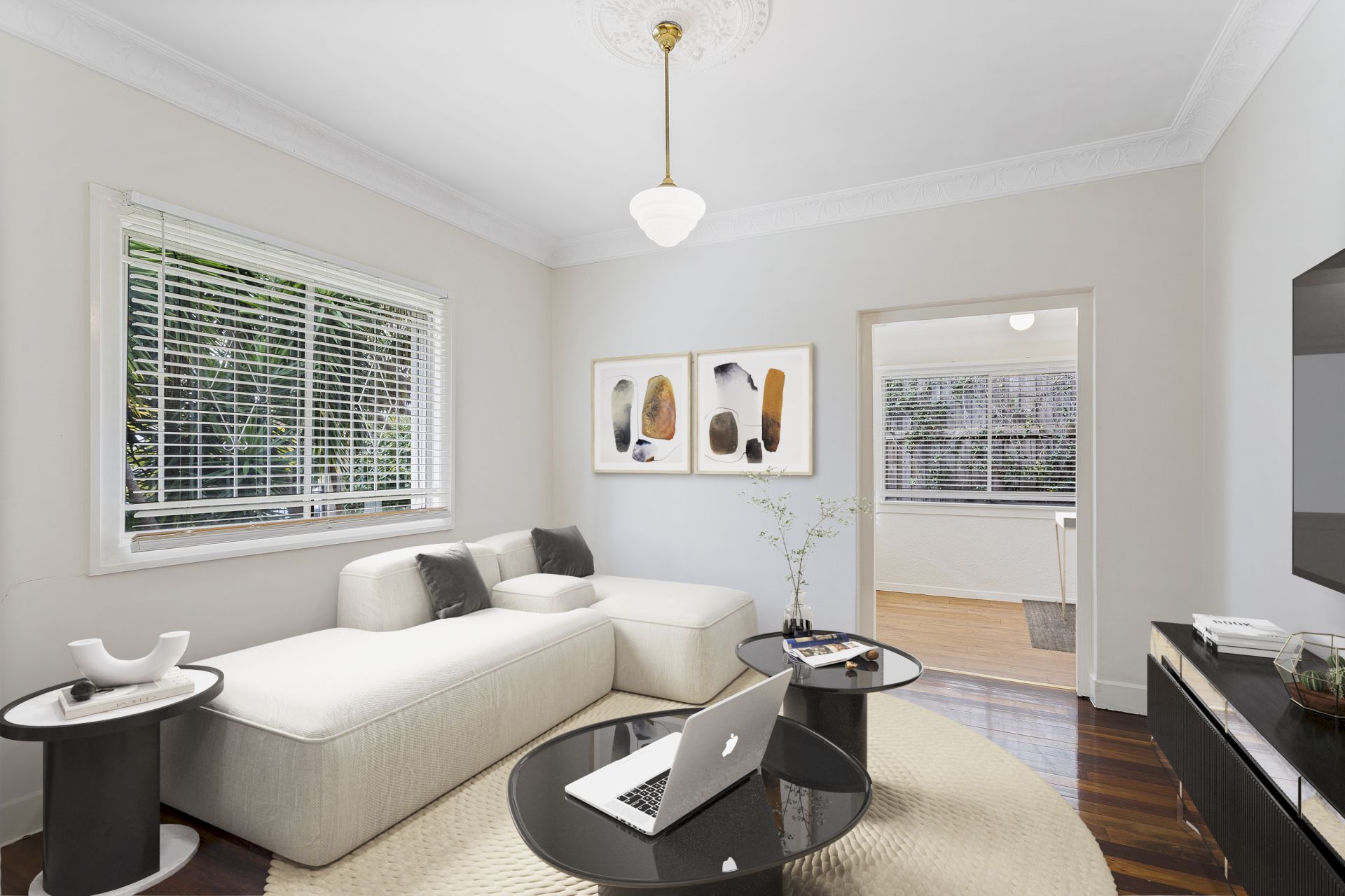 > The living area located at the front of the home flows effortlessly to the first study featuring extra high ceilings, ornate cornicing with ceiling rose, pendant lighting, sliding window with security bar and rich timber flooring.