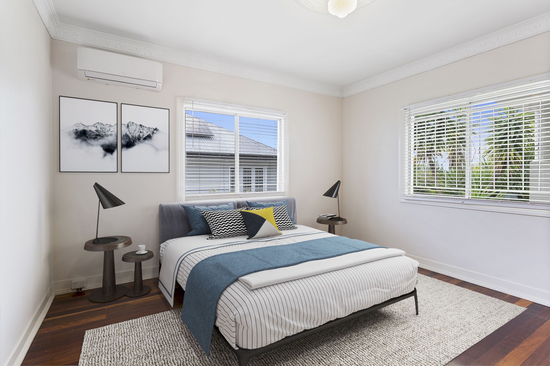 > The master offers extra-high ceilings, ornate cornicing with ceiling rose, rich timber flooring, Kelvinator split-system air-conditioning, sliding windows, with combination of fly screens, security bars on front windows, venetian blinds and built-in robes.