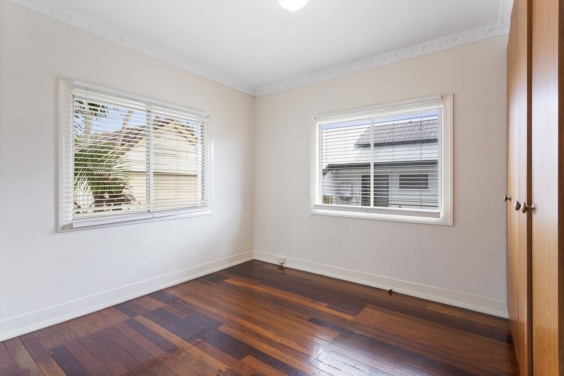 > Bedroom 2 features extra-high ceilings, ornate cornicing with ceiling rose, rich timber flooring, sliding windows with fly screens, security bars on front windows, venetian blinds and built-in robes.