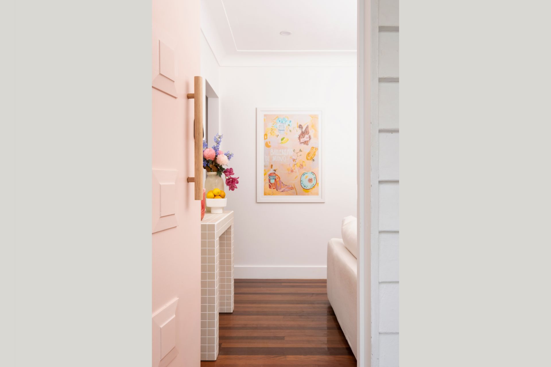 > Bedroom 3 features extra-high ceilings, rich timber flooring, split-system air-conditioning, ceiling fan, down lighting, casement windows with plantation shutters as well as glass French doors with sheer curtains giving you access to the private balcony.