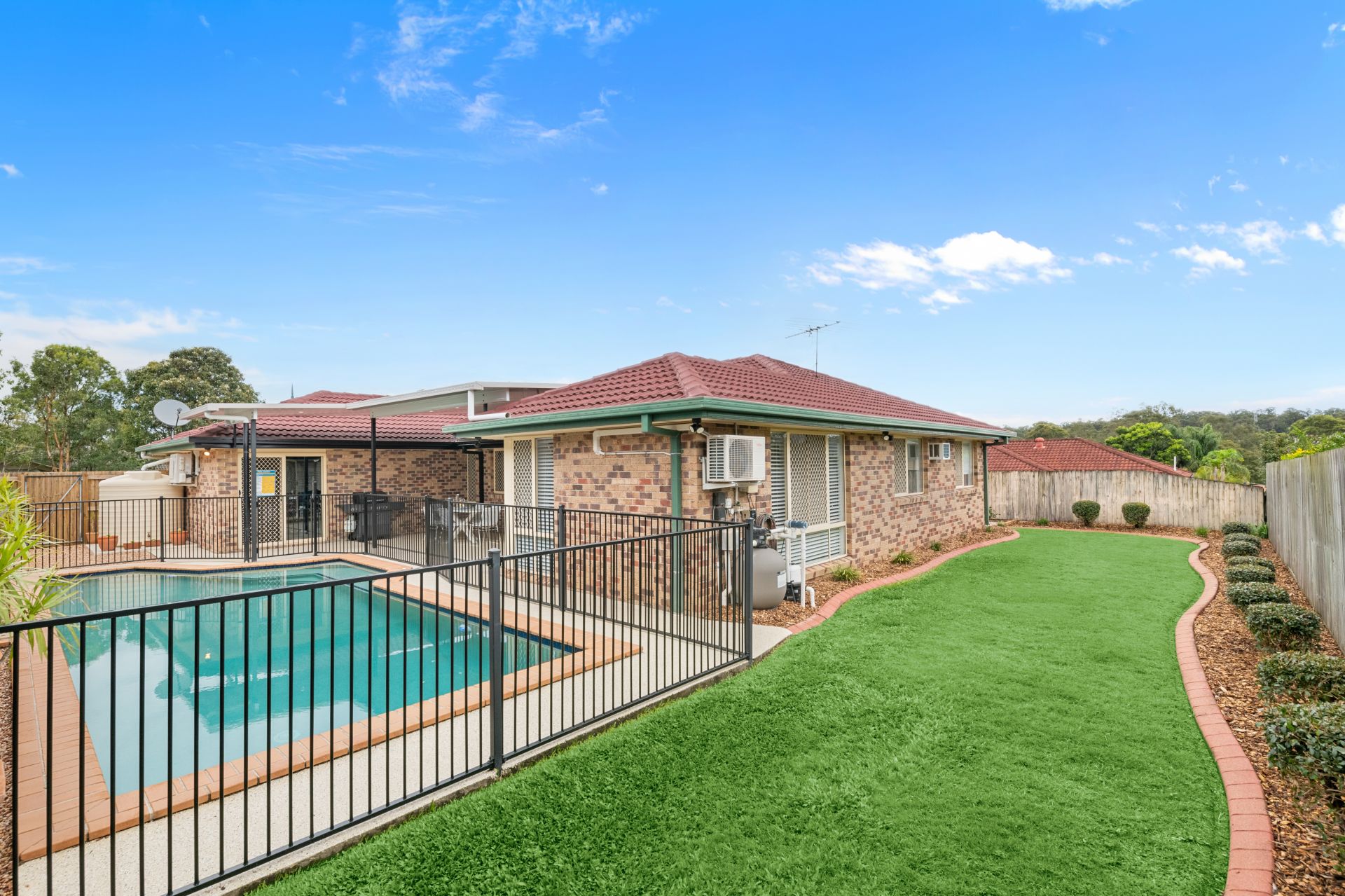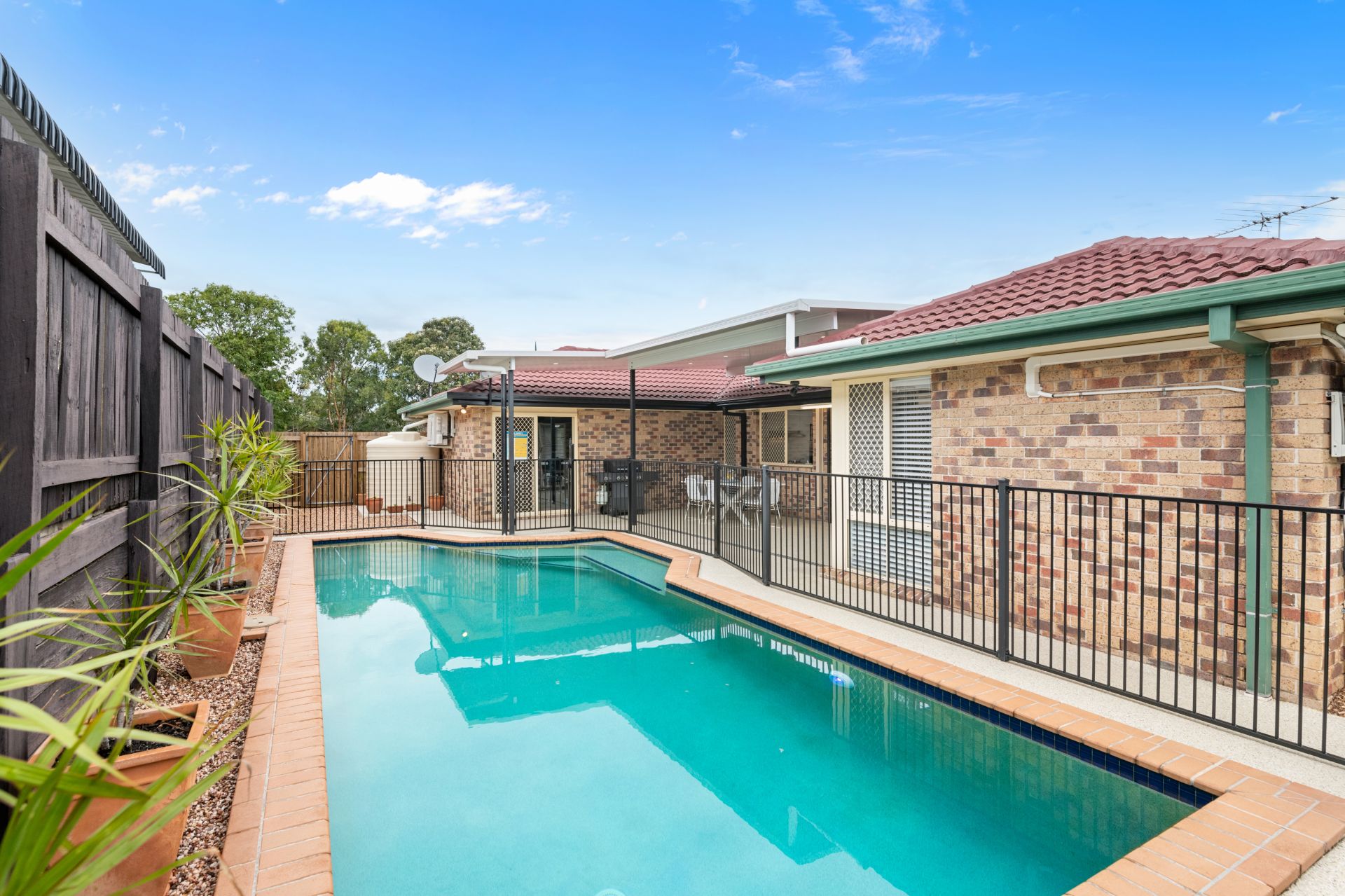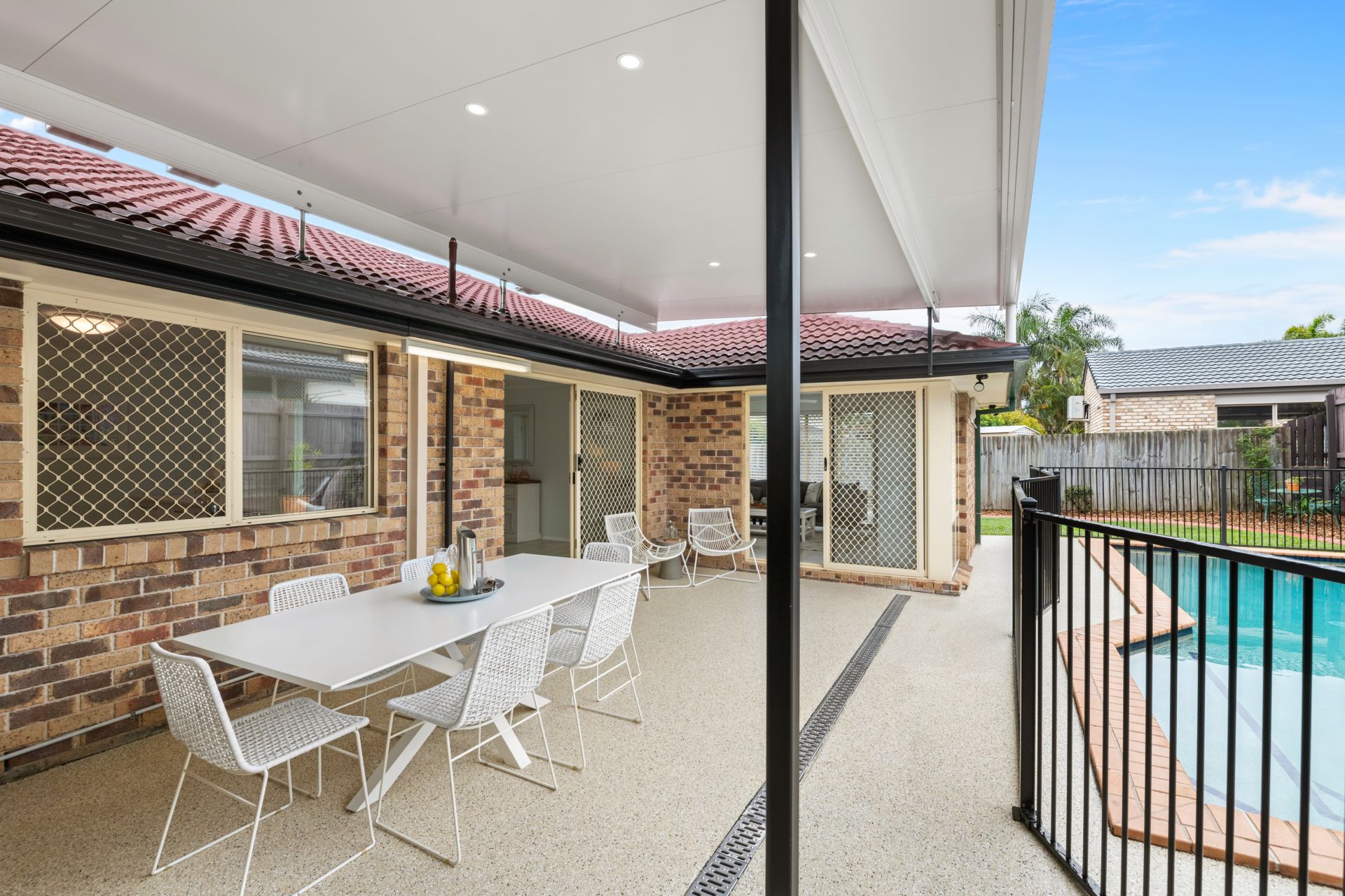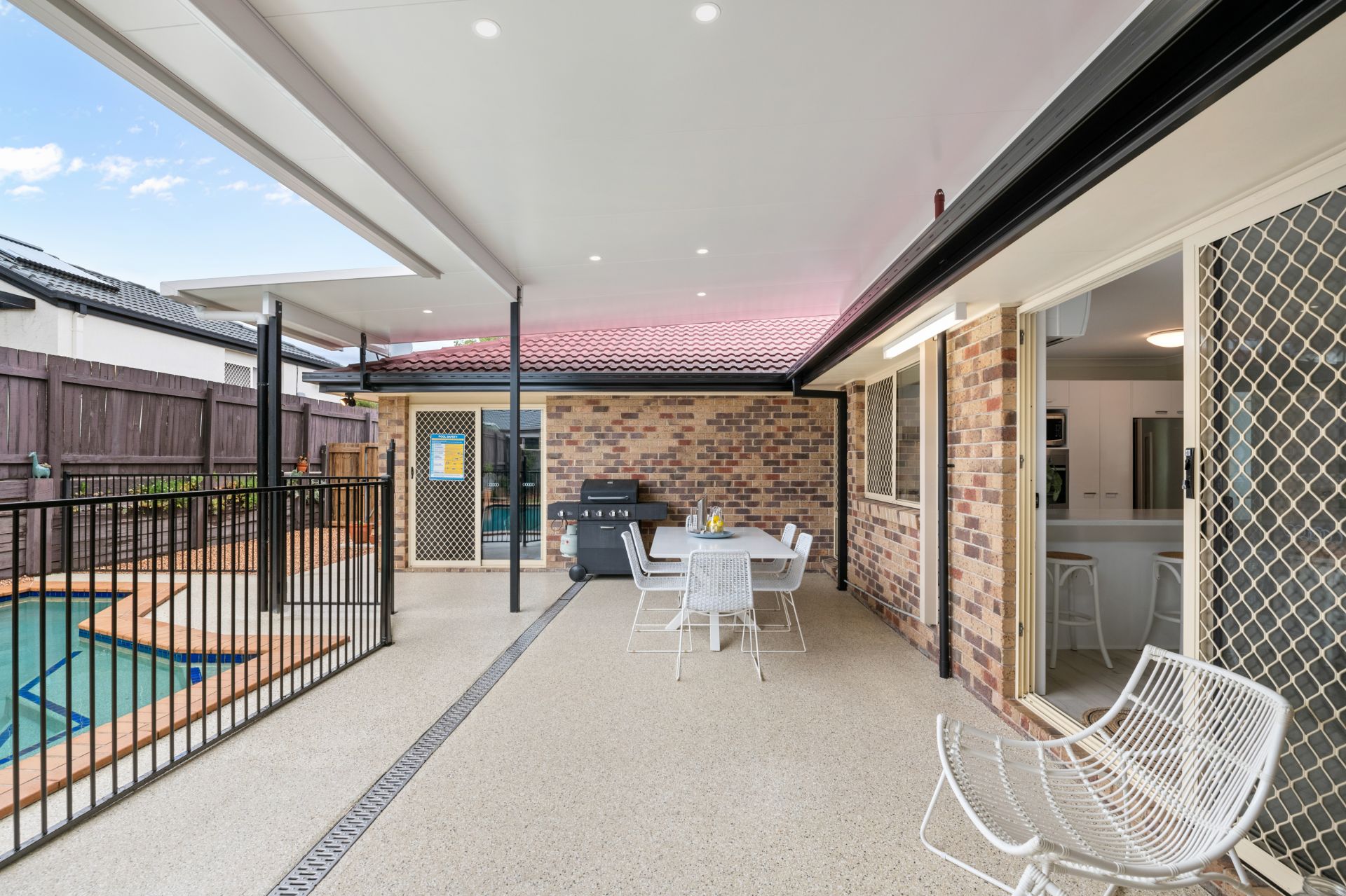 - The covered outdoor entertainment area, accessible from both the family and dining rooms, overlooks the amazing in-ground pool and features epoxy coated flooring, insulated roof with LED lighting and access to the secure double lock-up garage.