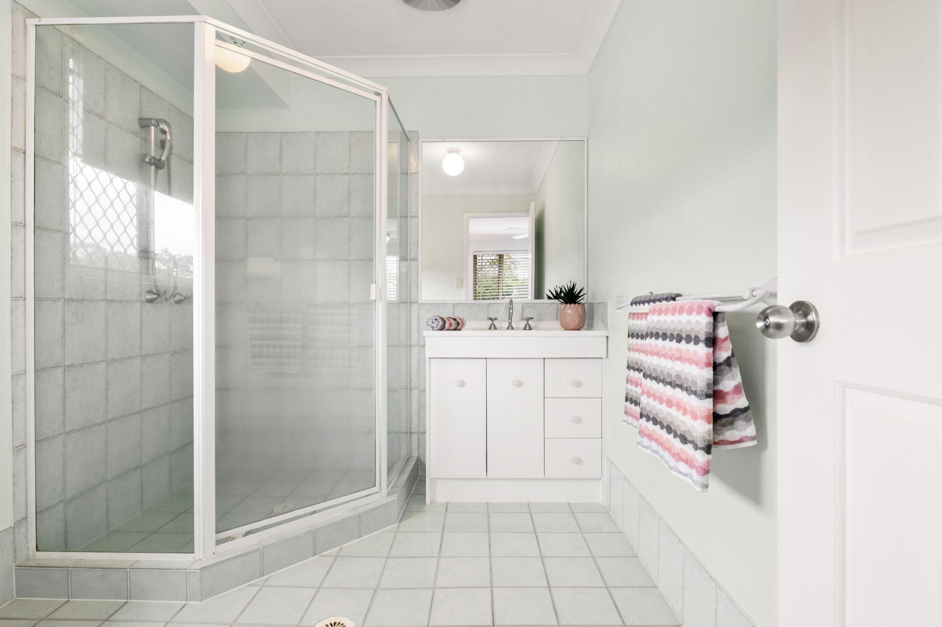 - Bathroom two is the ensuite to the master bedroom and features tiled flooring, over-sized shower, single vanity and toilet.