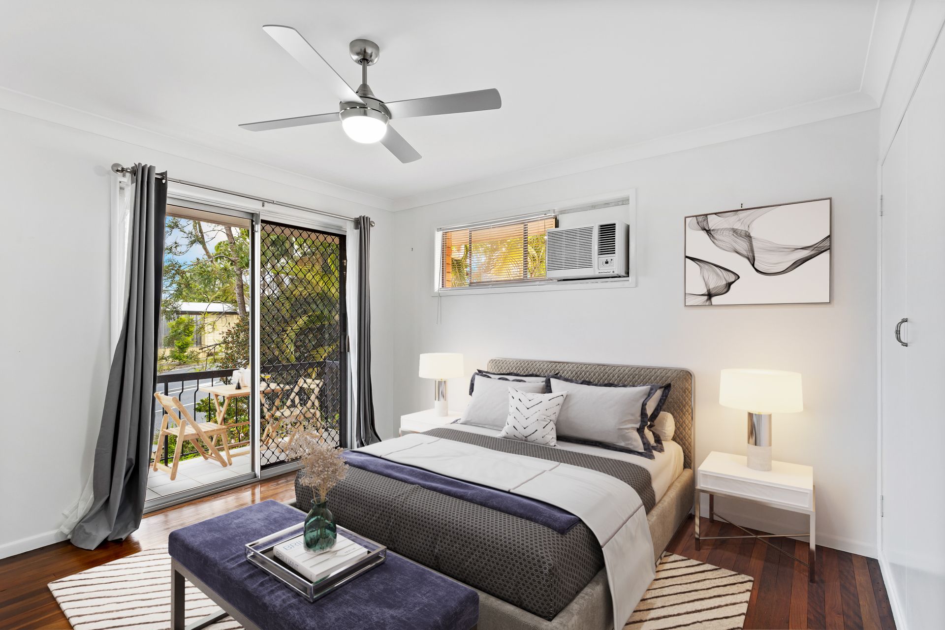 - Bedroom one features polished timber flooring, new air-conditioning, new ceiling fan, built-in-robe, access to the front balcony and newly tinted windows for added privacy.
