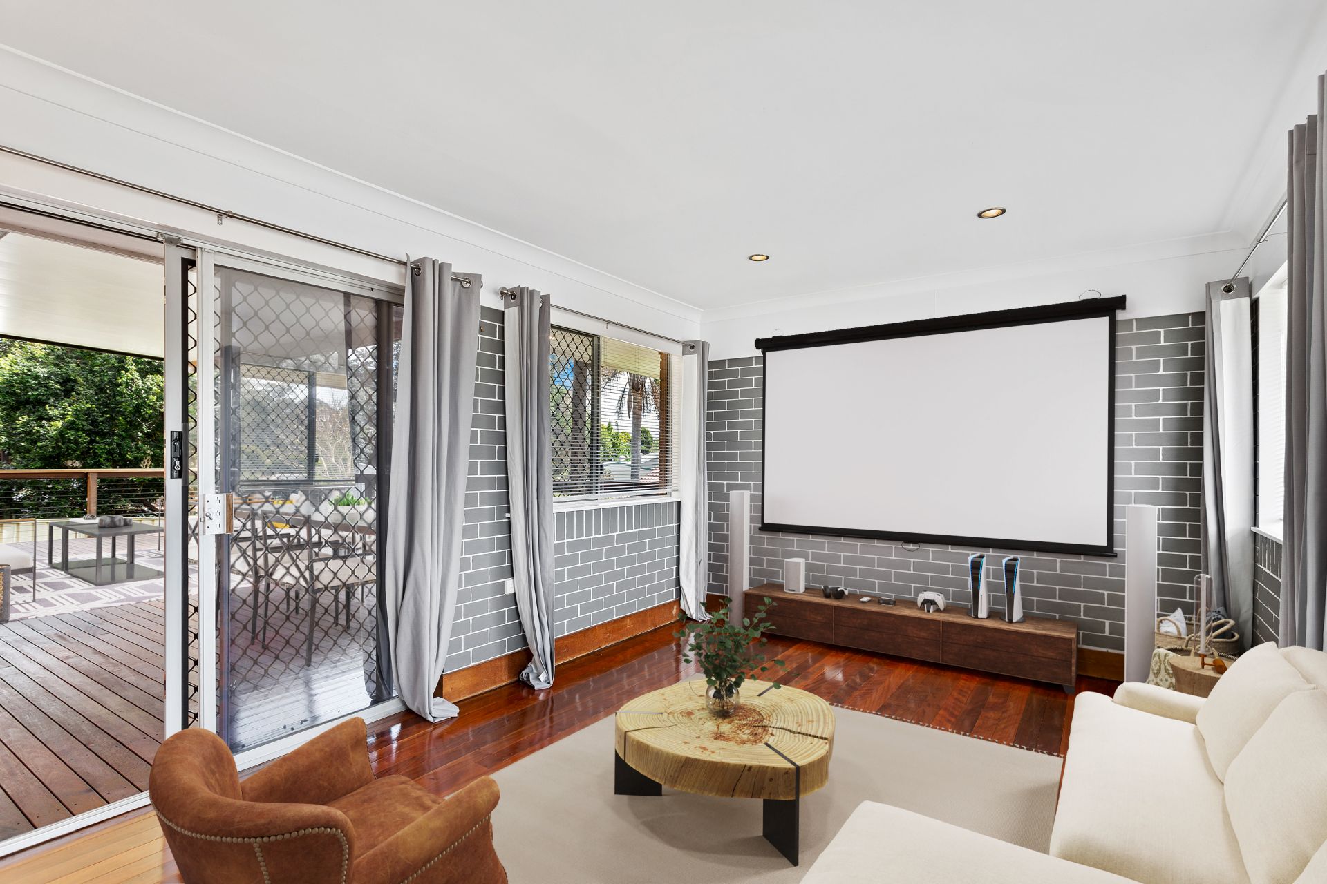 - Family room features polished timber flooring, projector screen, security screens and access to the rear entertainer's deck.