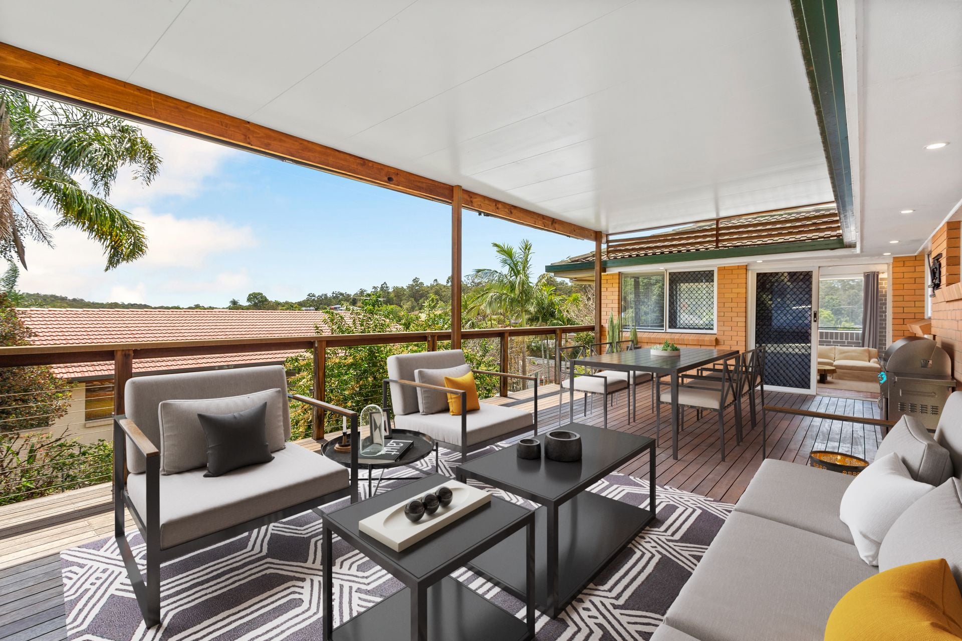 - Large entertainer's deck sits at the rear of the home with incredible views overlooking the rooftops of the surrounding area. It features beautiful timber decking and outdoor power.