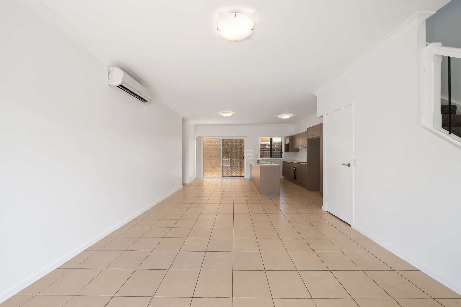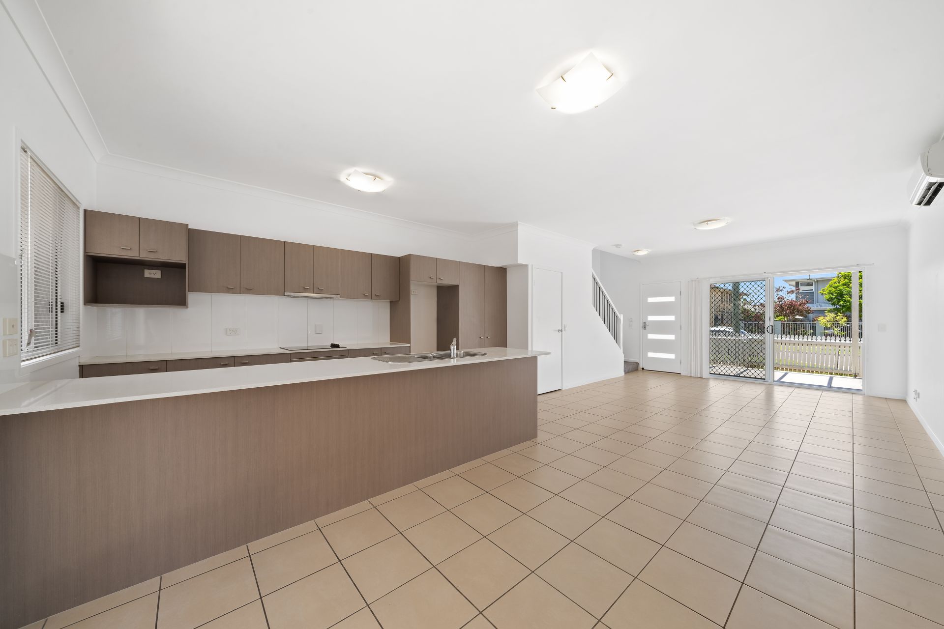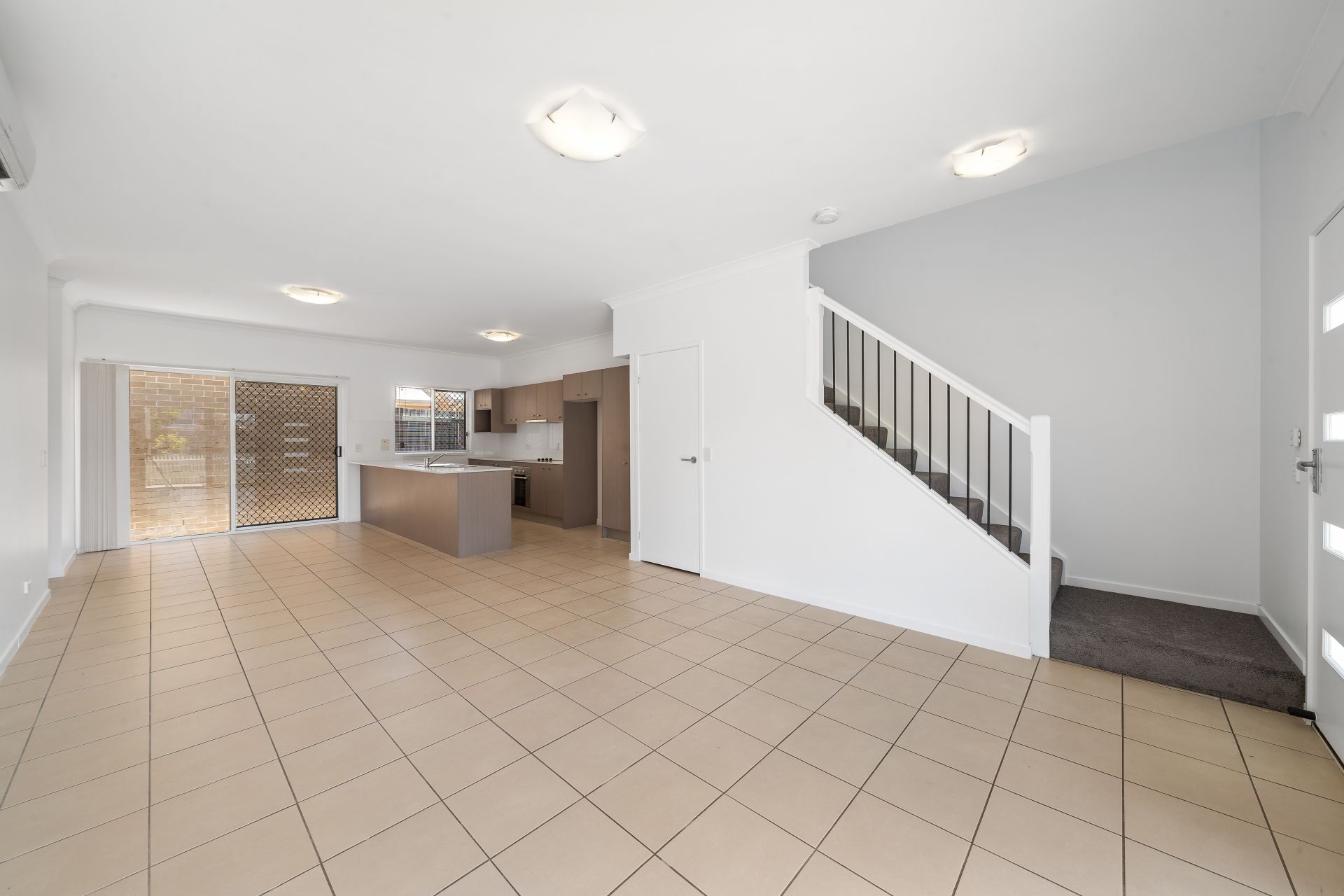 > The combined lounge/dining area, located at the heart of the home boasts Hitachi split-system air conditioning, extra-high ceilings, tiled flooring, down-lighting, front door access, access to the front semi covered outdoor entertaining area via the glass sliding door with security/fly screen and backyard access via glass sliding door with security/fly screen offering a seamless flow of living space.