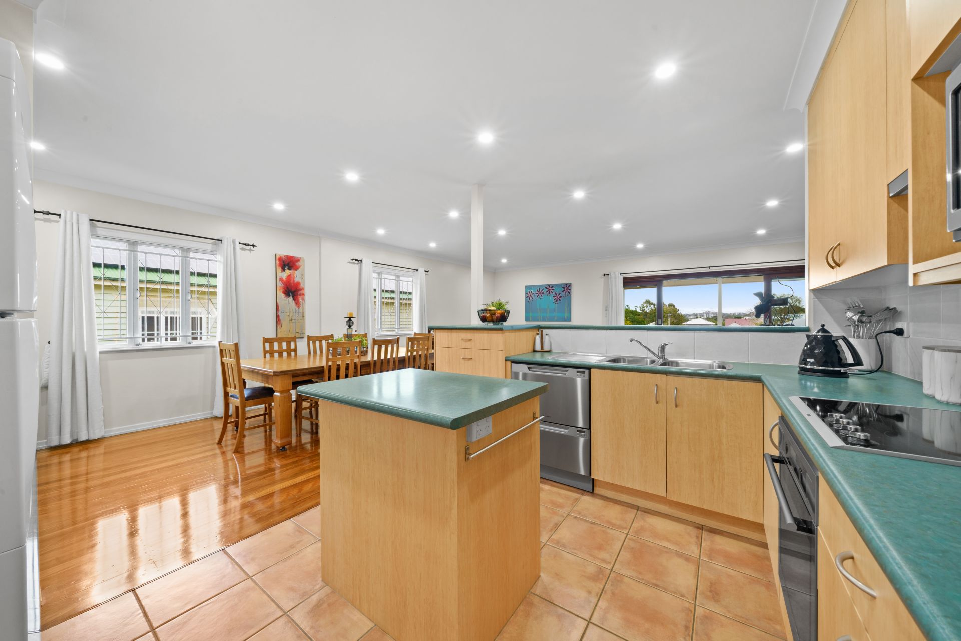 - Central kitchen with island bench