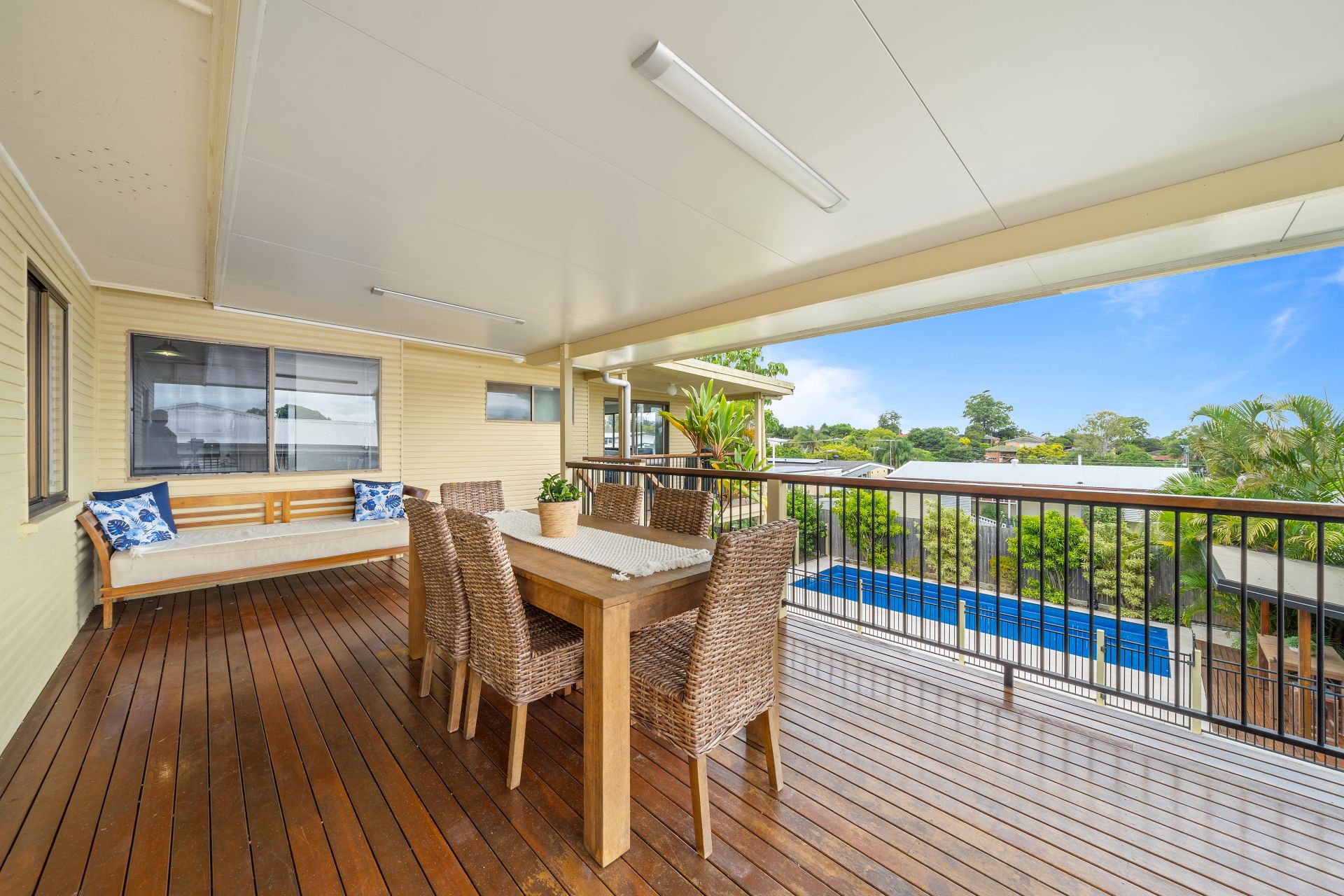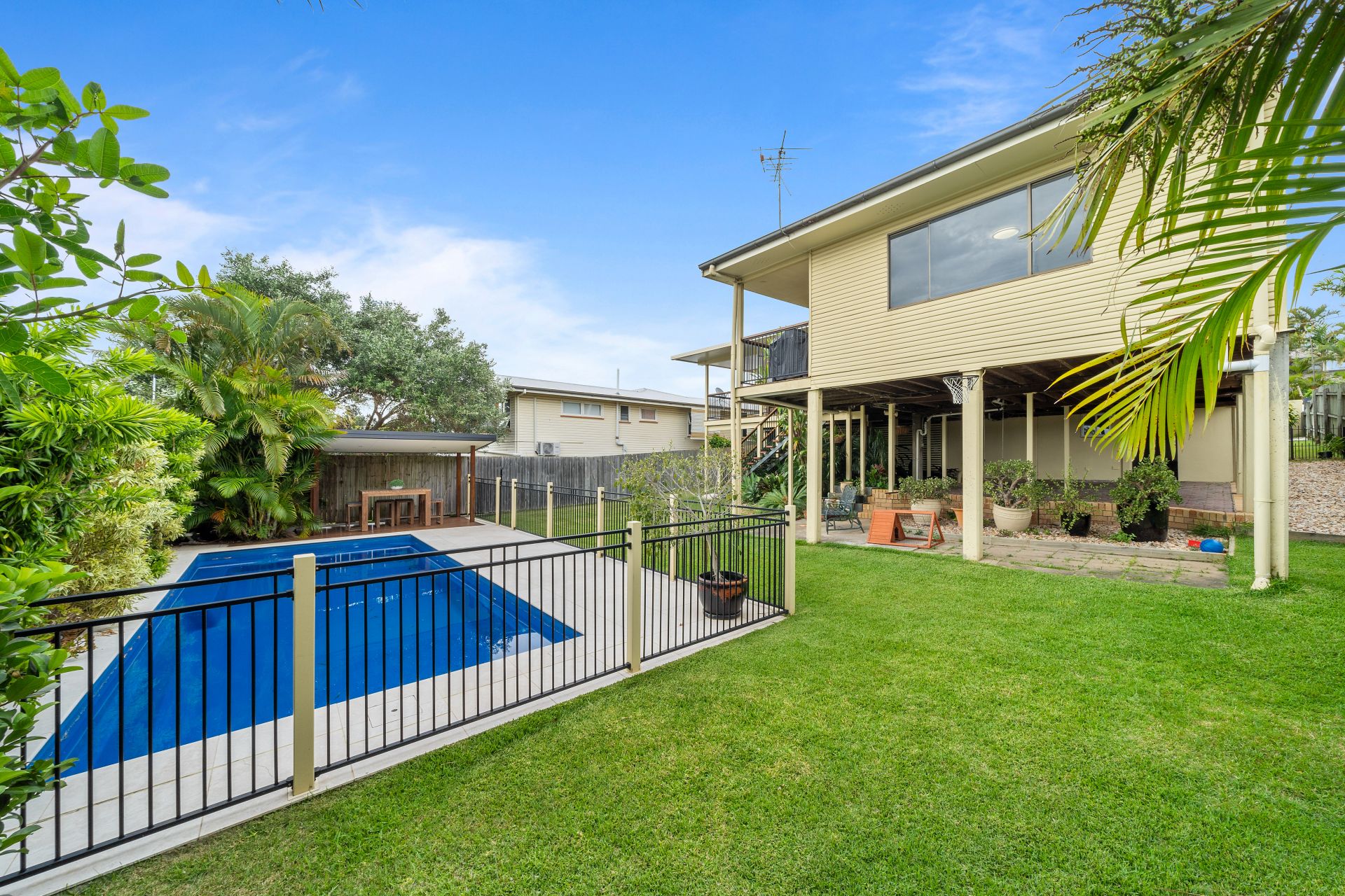 - Outdoor entertaining will be a breeze thanks to the many options this property has to offer, from the front balcony to the large rear deck and downstairs patio, giving you views over the glistening in-ground swimming pool, teamed up with the fully fenced kid/pet friendly yard encapsulating everything there is to love about our Queensland lifestyle.